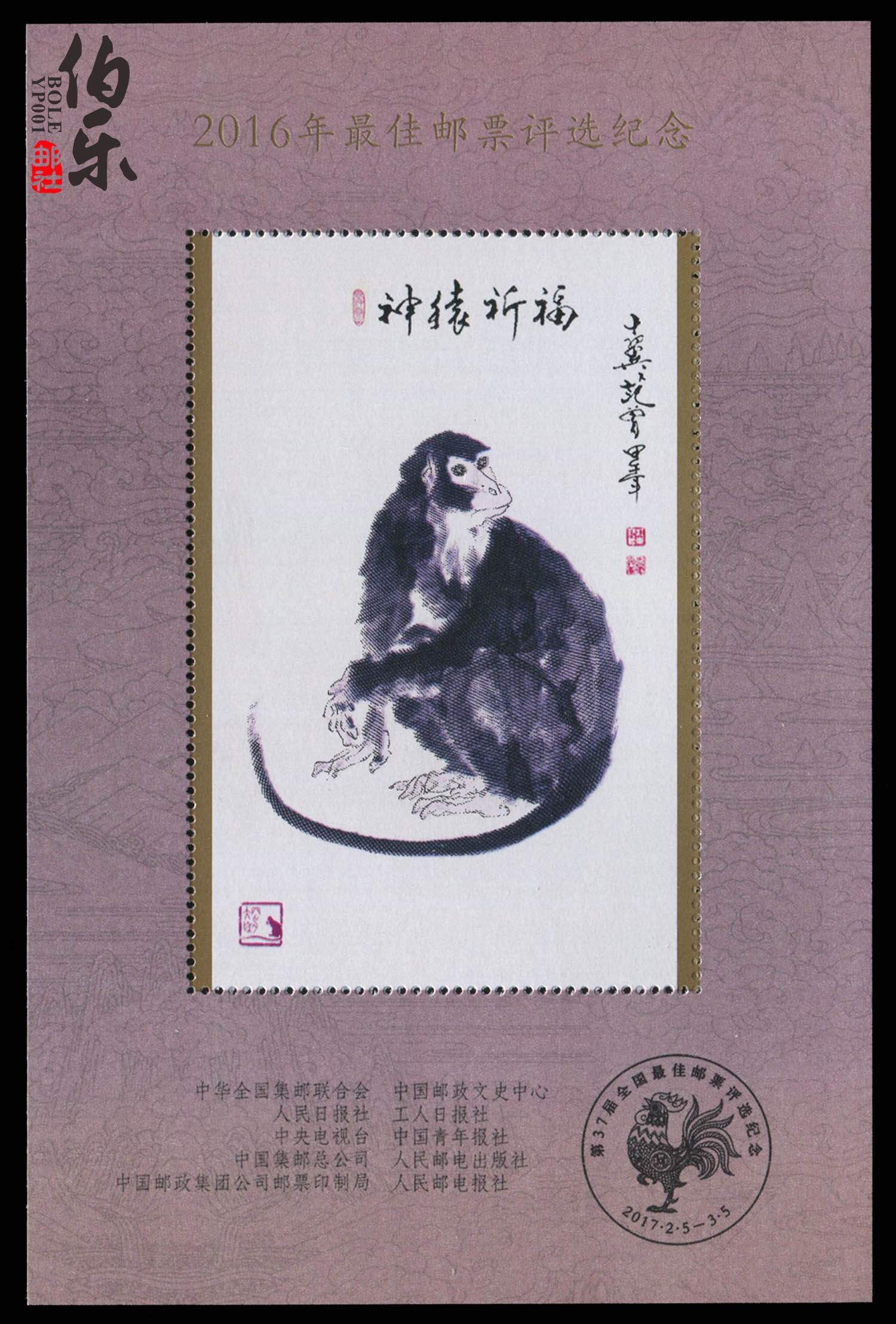 2016 Зодиак -обезьяна Памятная печать + награды одна пара - 100 пар неповрежденных