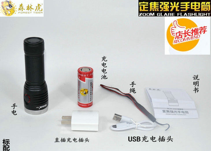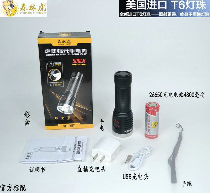 森林虎 Маленький супер яркий фонарь, дорожный светильник, литиевые батарейки с зарядкой, x57, T6