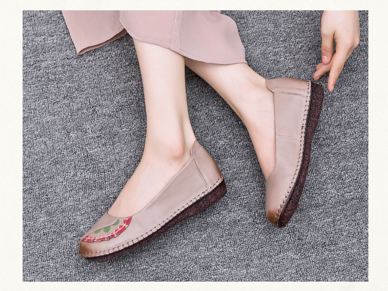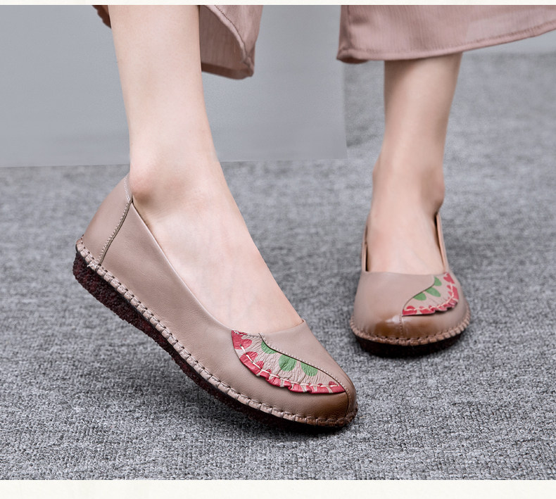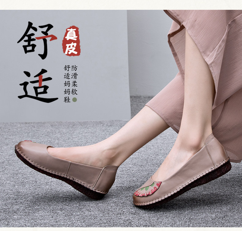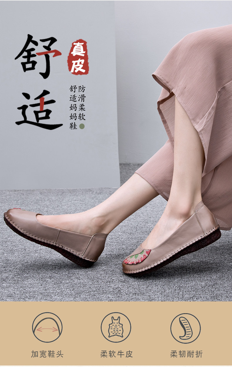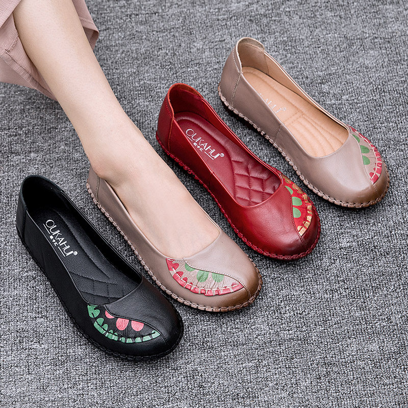 Комфортная нескользящая плоская подошва обувь для матери для кожаной обуви, осенняя, из натуральной кожи, мягкая подошва, для среднего возраста