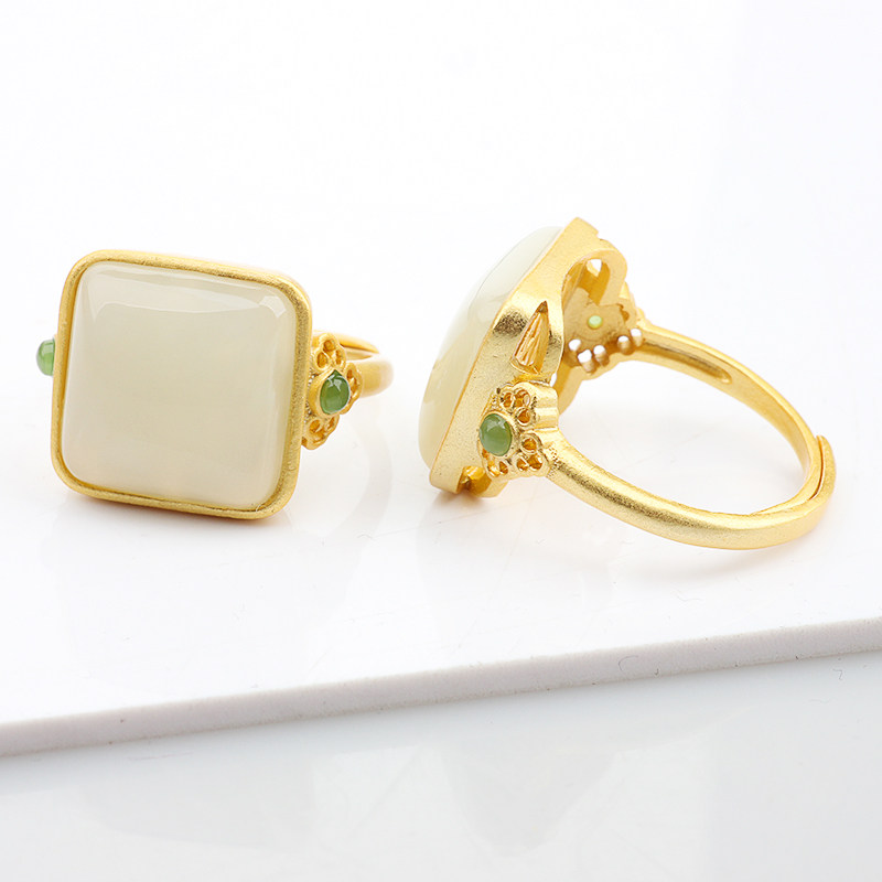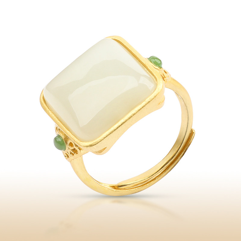 Инкрустация камня из нефрита, яшма, регулируемое ретро кольцо подходит для мужчин и женщин, серебро 925 пробы