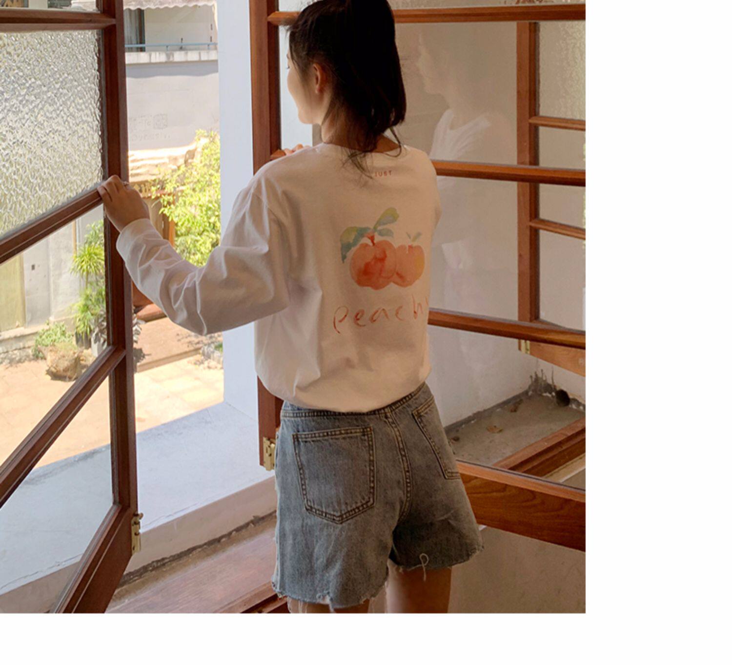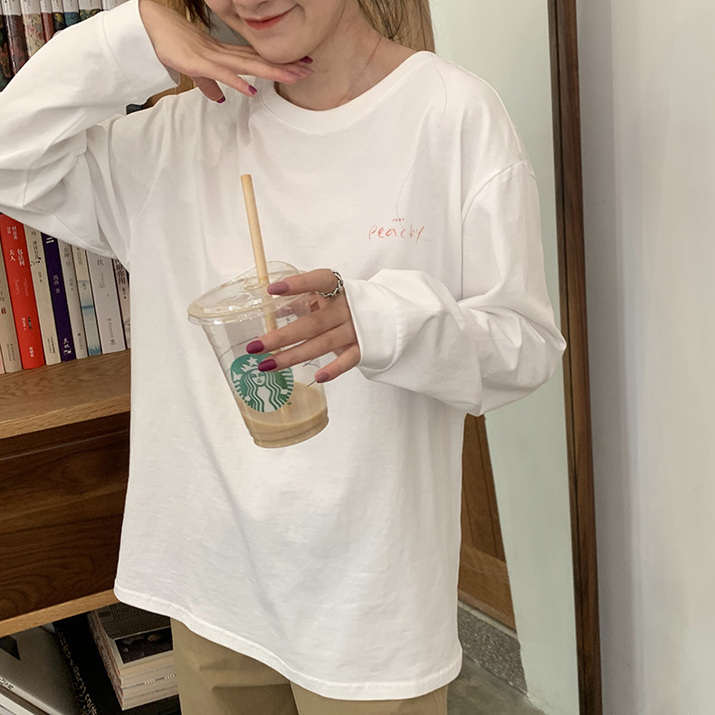 Футболка, брендовый белый хлопковый осенний лонгслив