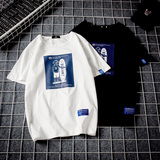 Тонкая хлопковая японская трендовая футболка с коротким рукавом для школьников и студентов, оверсайз