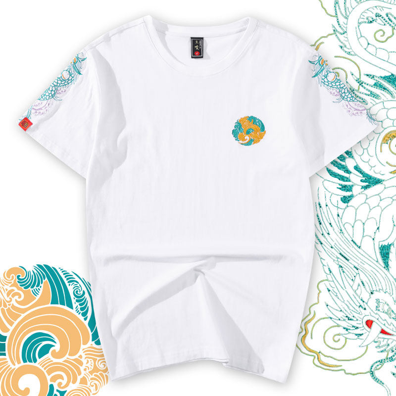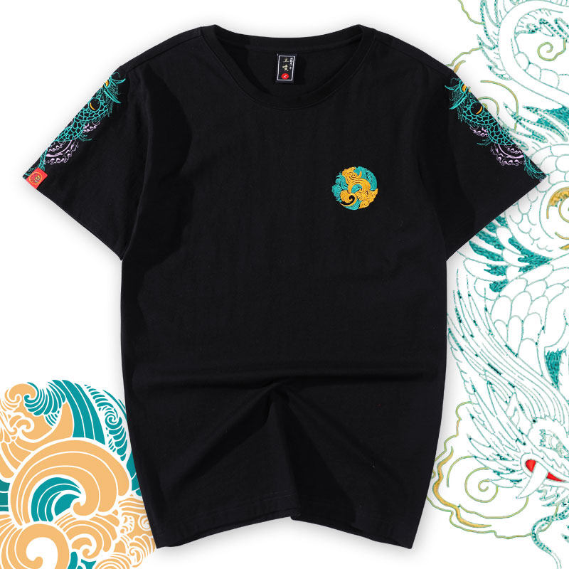 Оригинальная хлопковая футболка, китайский стиль, с вышивкой, принт, оверсайз, большой размер