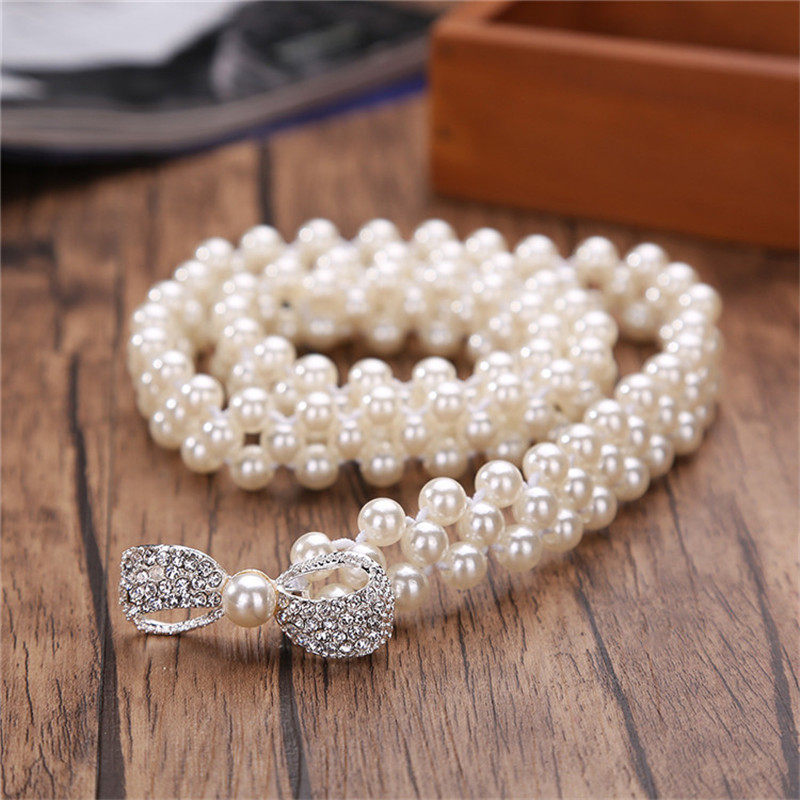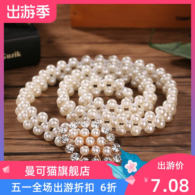 Ремень из жемчуга для школьников и студентов, универсальный свитер, эластичная талия, в корейском стиле