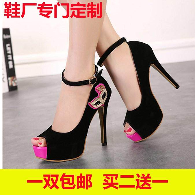 Босоножки, шнурки, замшевый шнурок-держатель, черные туфли на высоком каблуке, в корейском стиле