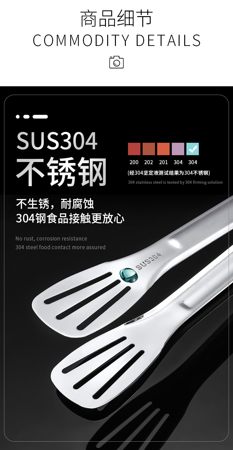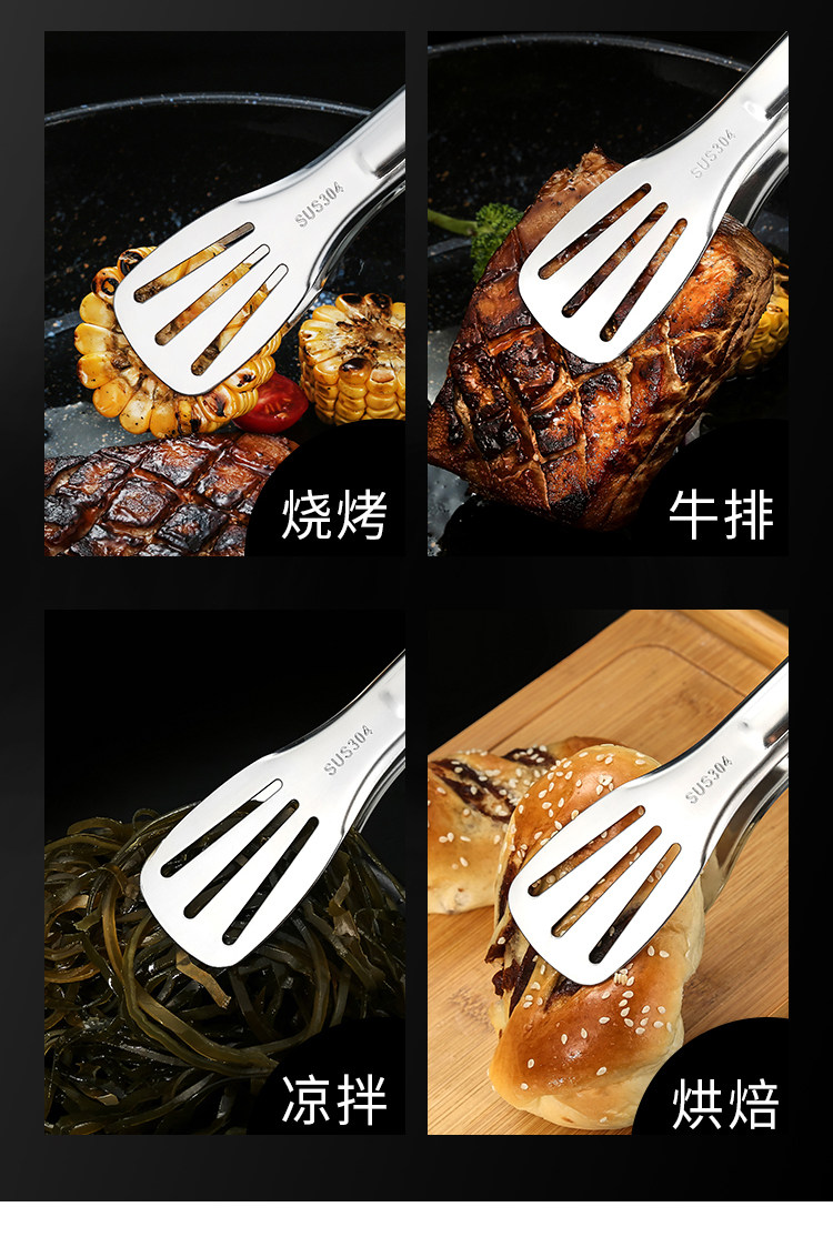 Щипцы для еды из нержавеющей стали для коммерческого использования, увеличенная толщина, нержавеющая сталь AISI 304