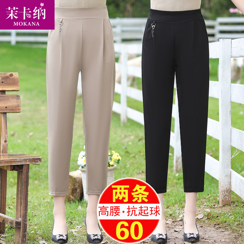Тонкие приталенные штаны для матери, 2020, для среднего возраста, высокая талия, эластичная талия, свободный крой