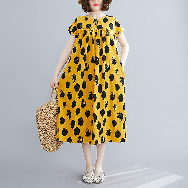 Платье, длинная юбка, коллекция 2021, большой размер, в западном стиле, свободный крой, подходит для полных девушек, средней длины