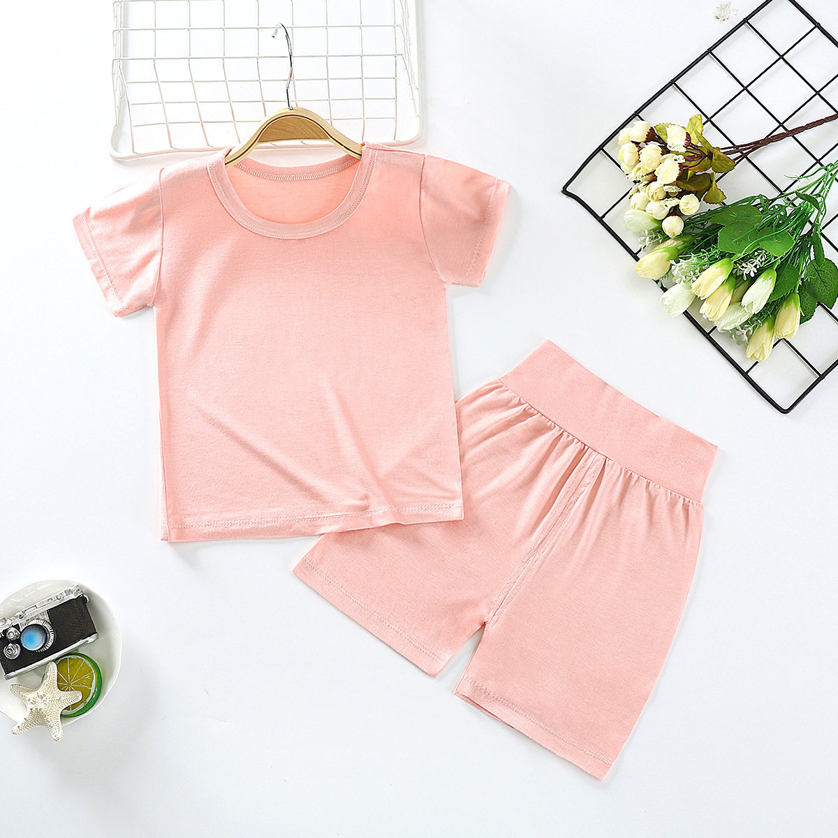 Летние нарукавники, комплект, костюм мальчика цветочника, детская пижама, короткий рукав, детская одежда