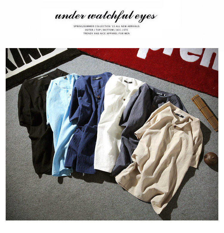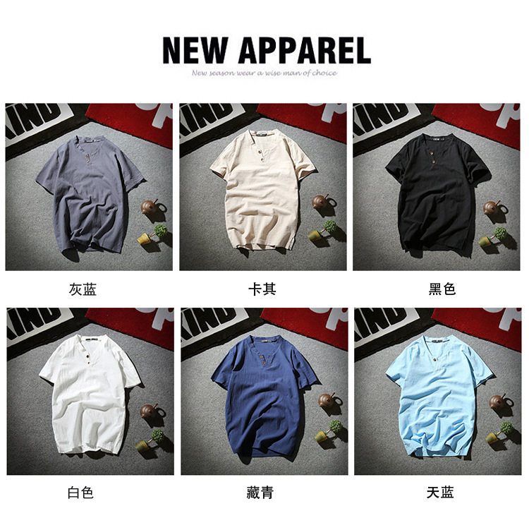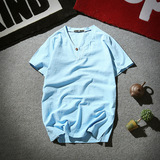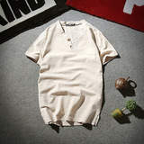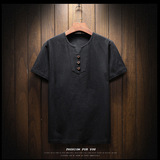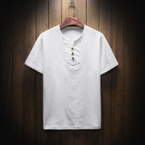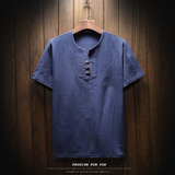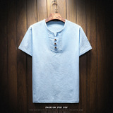 Летняя тонкая модная футболка, короткий рукав, китайский стиль, из хлопка и льна