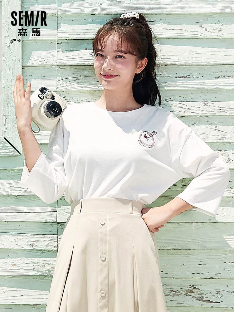 Semir, осенний хлопковый трендовый приятный телу лонгслив для школьников, с вышивкой, в корейском стиле