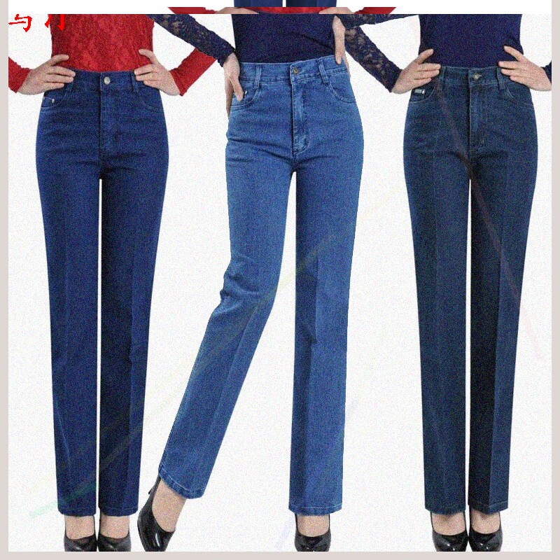 Зимние джинсы с начесом, штаны, для среднего возраста, высокая талия, эластичная талия