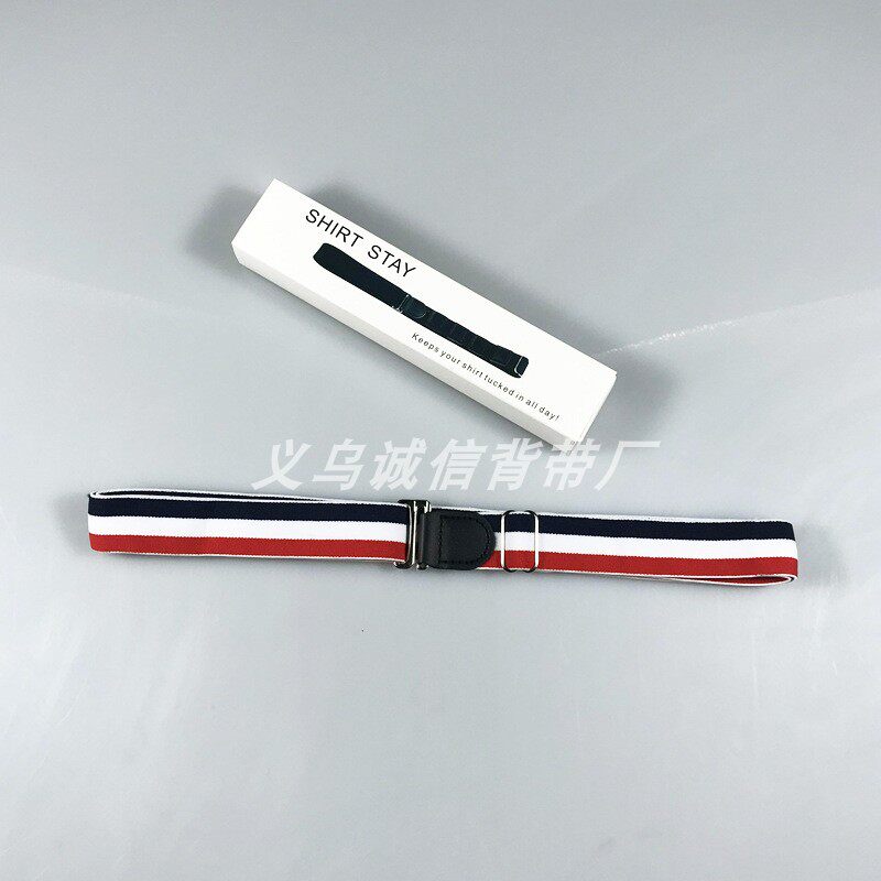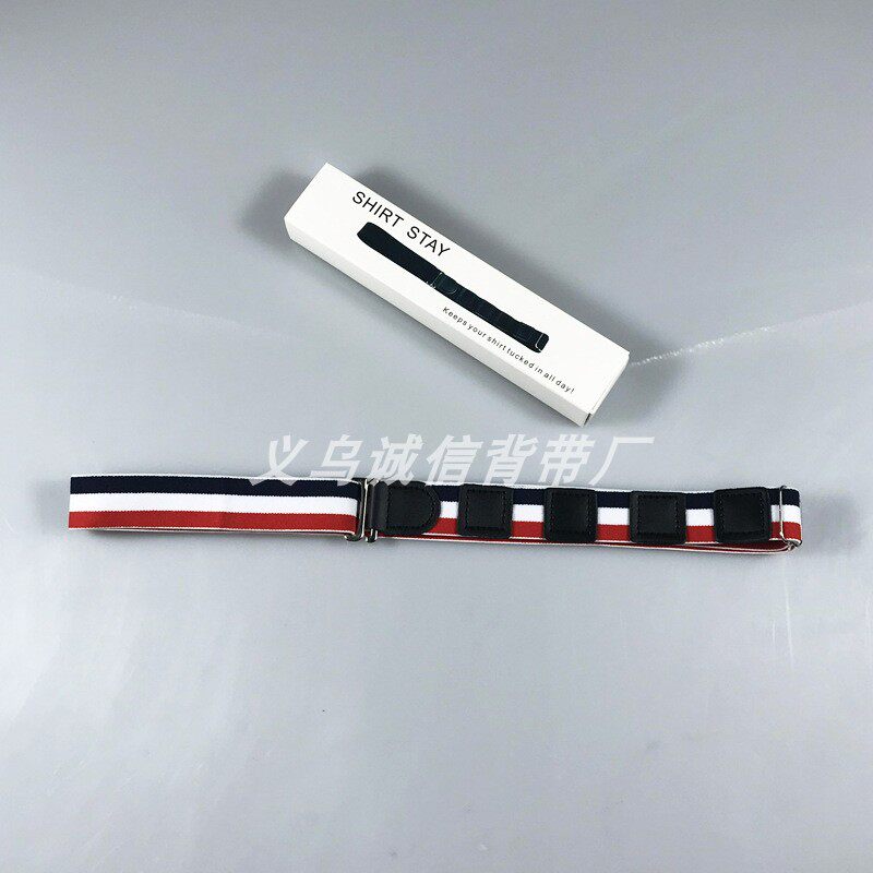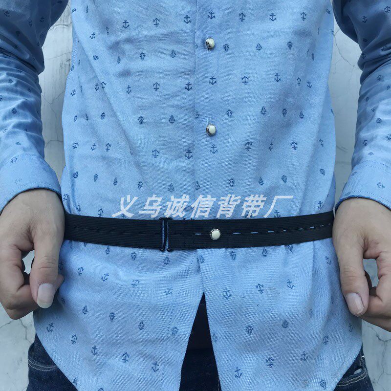 Ниже приведен отображение простого стиля (ремешок с пуговицами эластичной эластичной рубашки): он использует простое металлическое пряжку крючка с пуговицами на ремешках, который может пристегнуть кнопки рубашки.