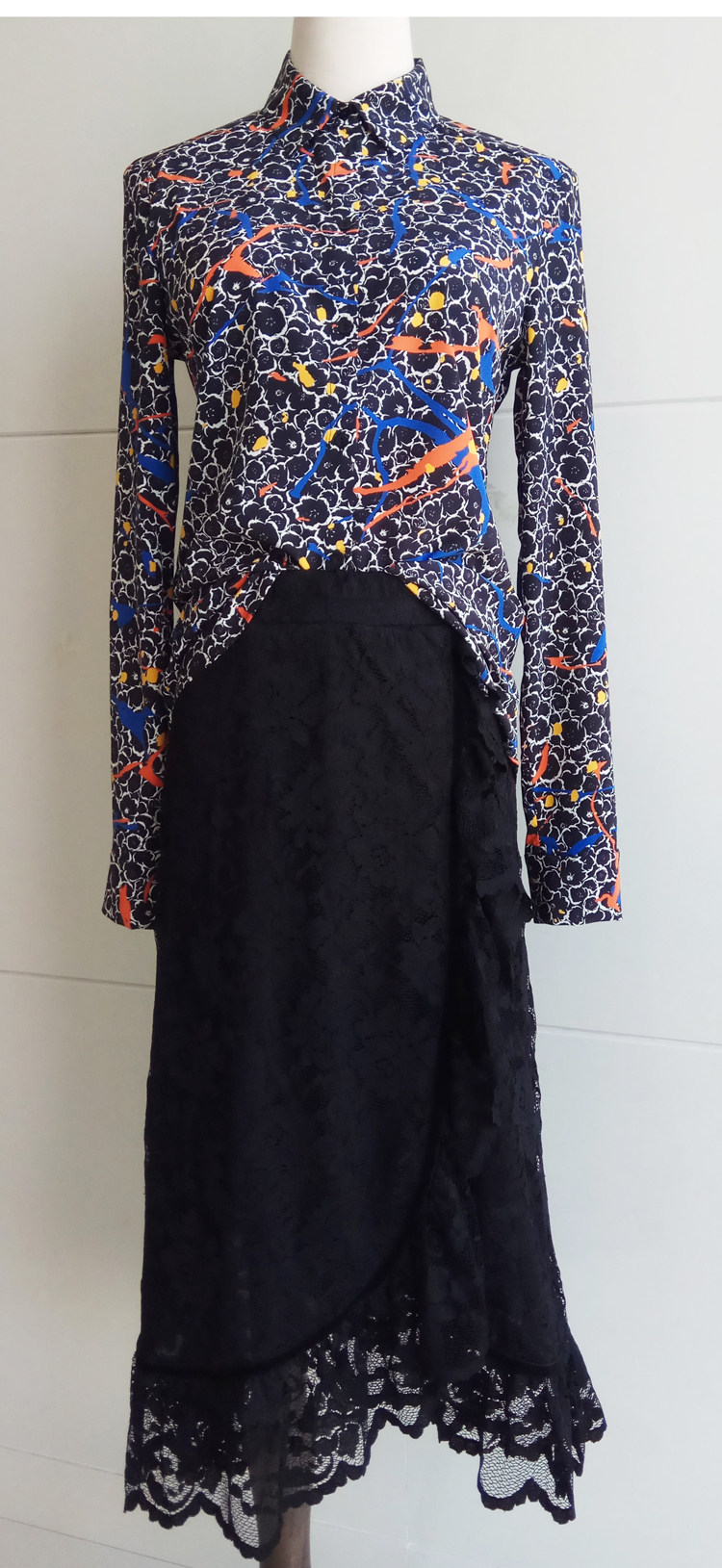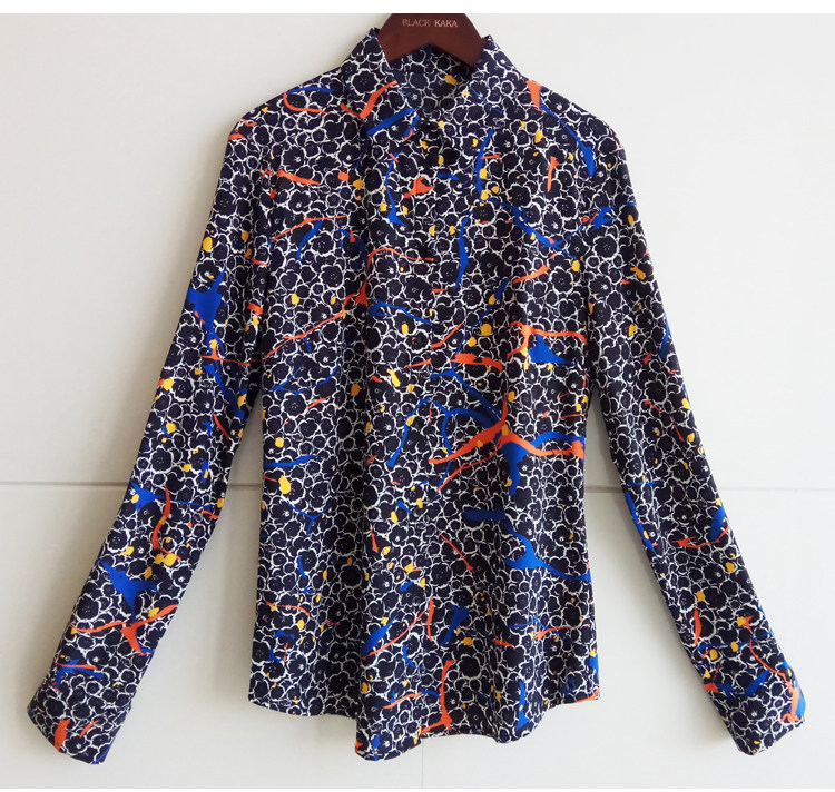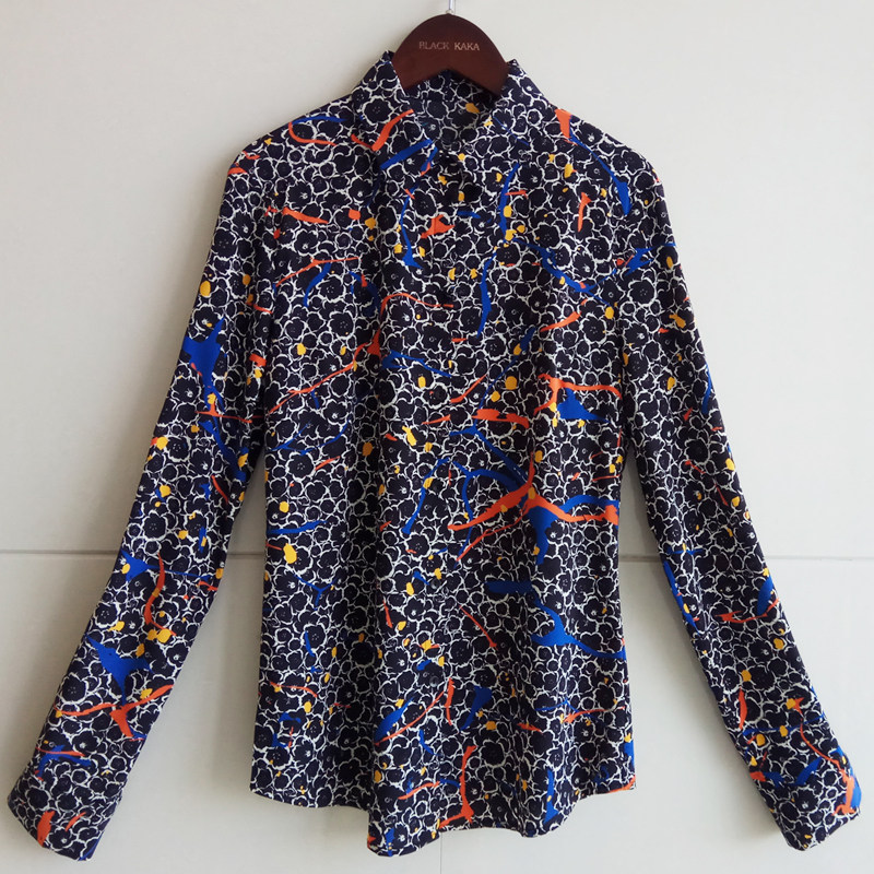 Модная шелковая рубашка, ручная роспись, квадратный вырез, облегающий крой