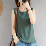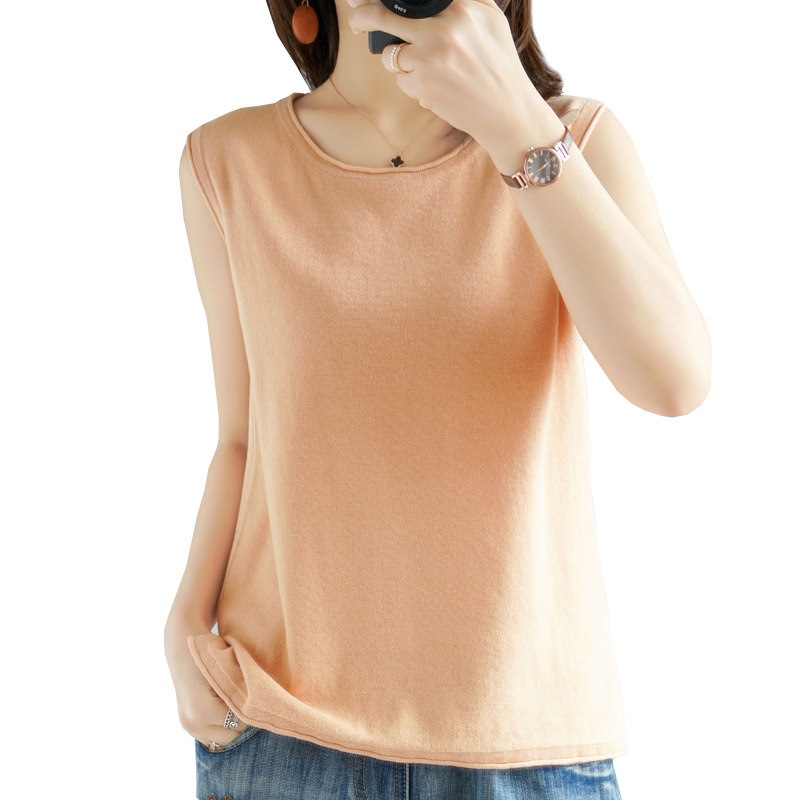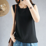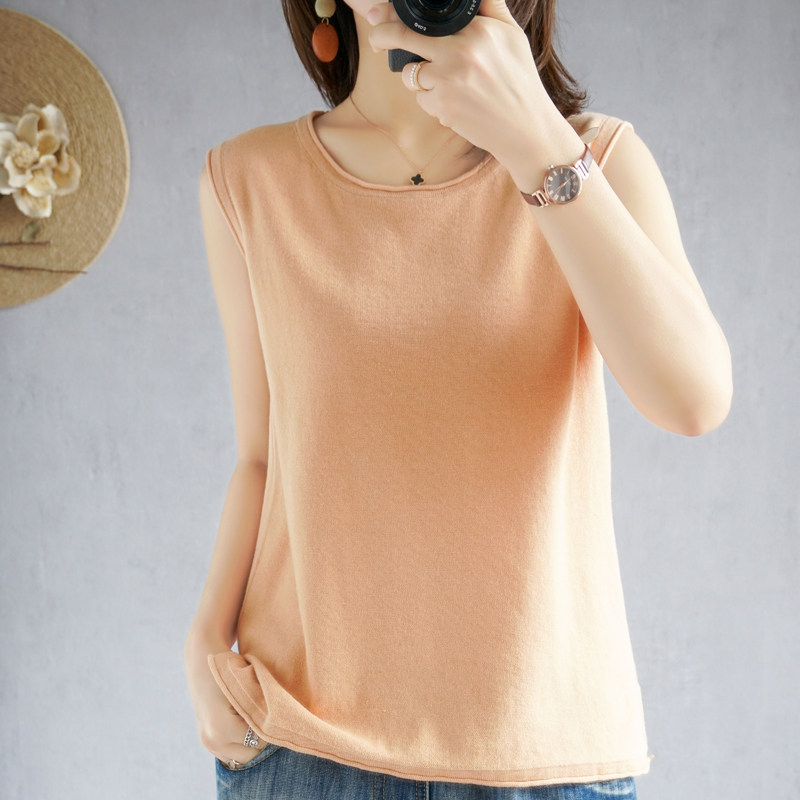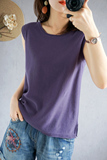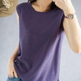Летняя хлопковая трикотажная футболка с круглым воротником, жилет без рукавов, 100% хлопок, популярно в интернете, из хлопка и льна