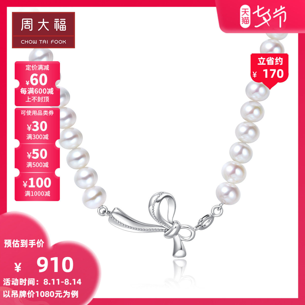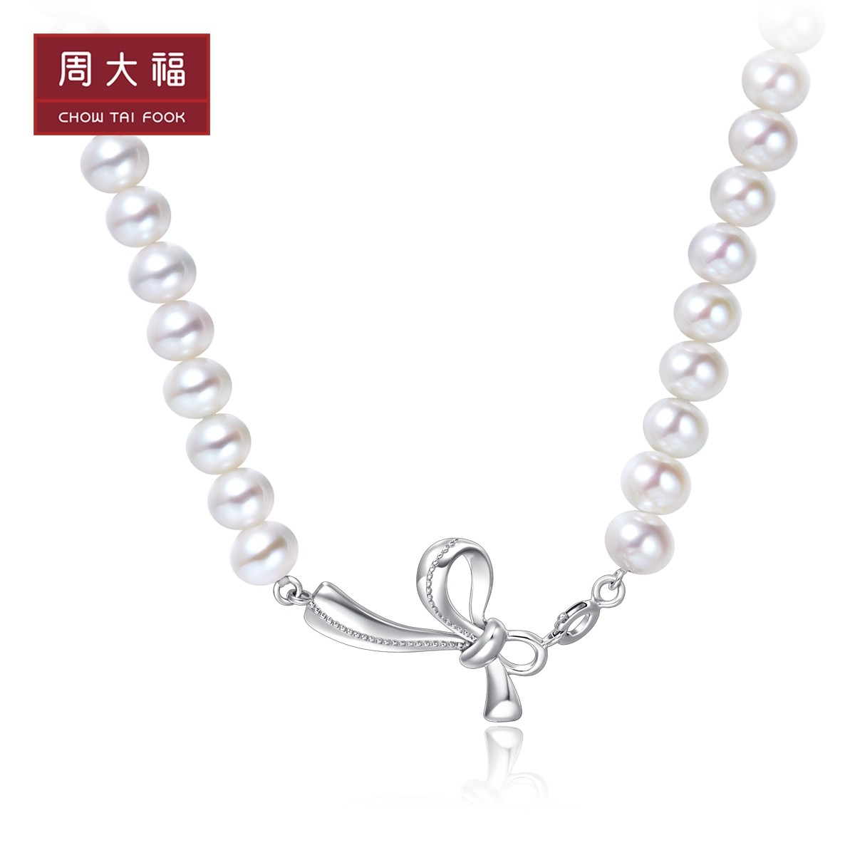 周大福 Элегантное ожерелье из жемчуга, серебро 925 пробы