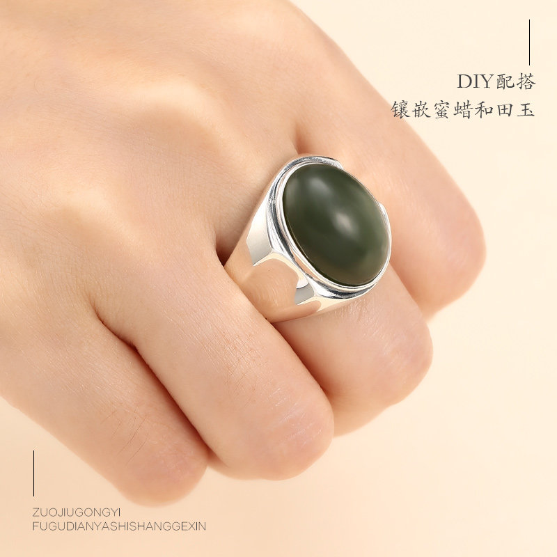 Безразмерное обручальное кольцо подходит для мужчин и женщин, инкрустация камня из воскового агата, бирюзовое кольцо с камнем, серебро 925 пробы, с драгоценным камнем