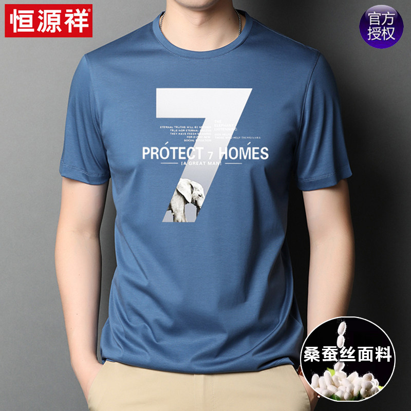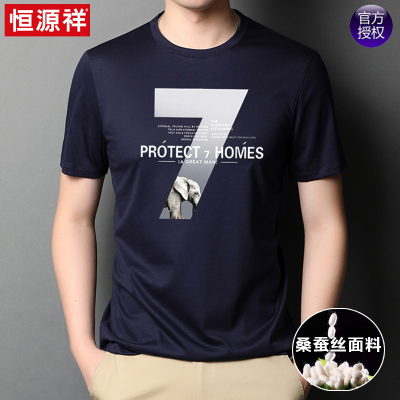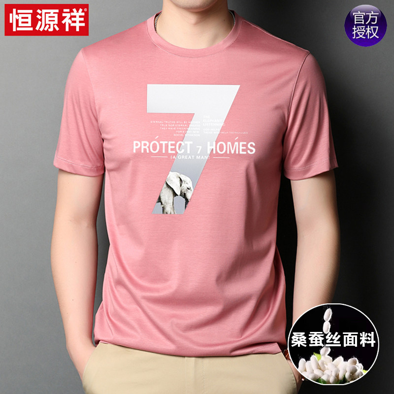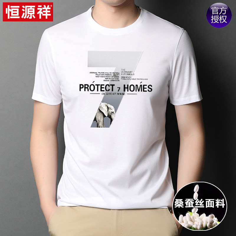 恒源祥 Летняя трендовая шелковая футболка с коротким рукавом с круглым воротником, в корейском стиле