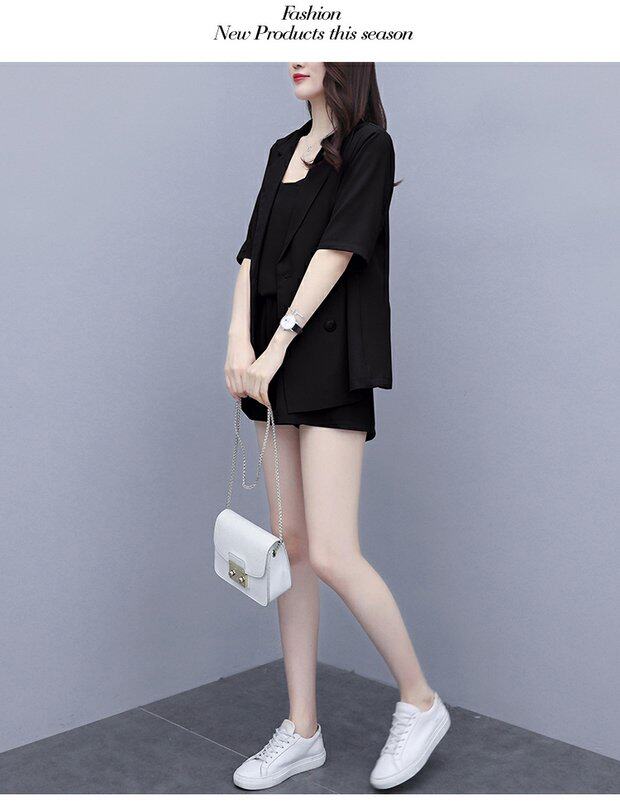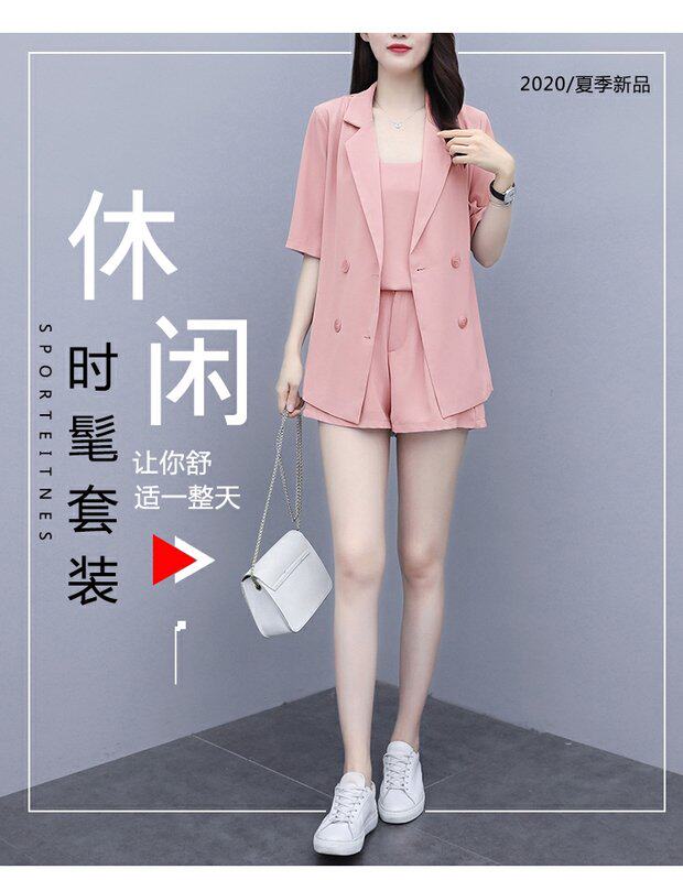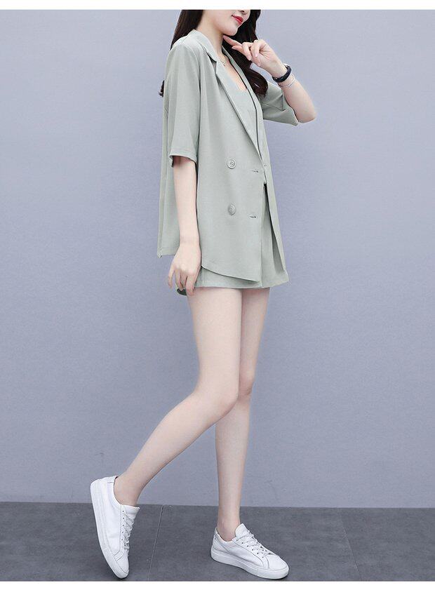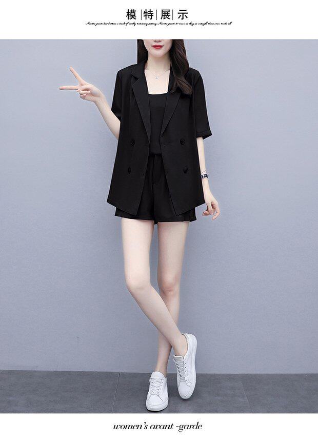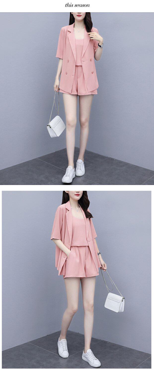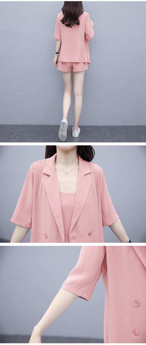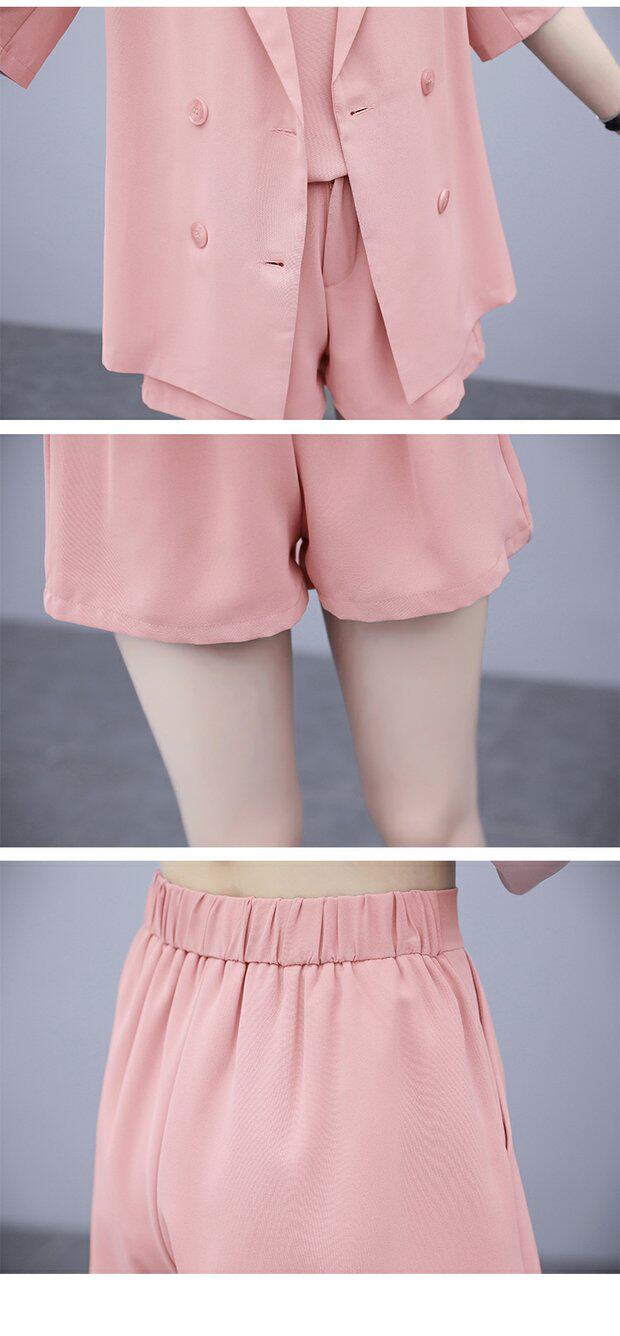 Шорты, комплект, летняя одежда, в корейском стиле, большой размер, в западном стиле, популярно в интернете, подходит для полных девушек, 3 предмета