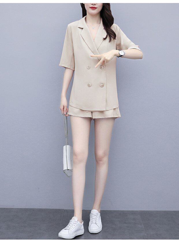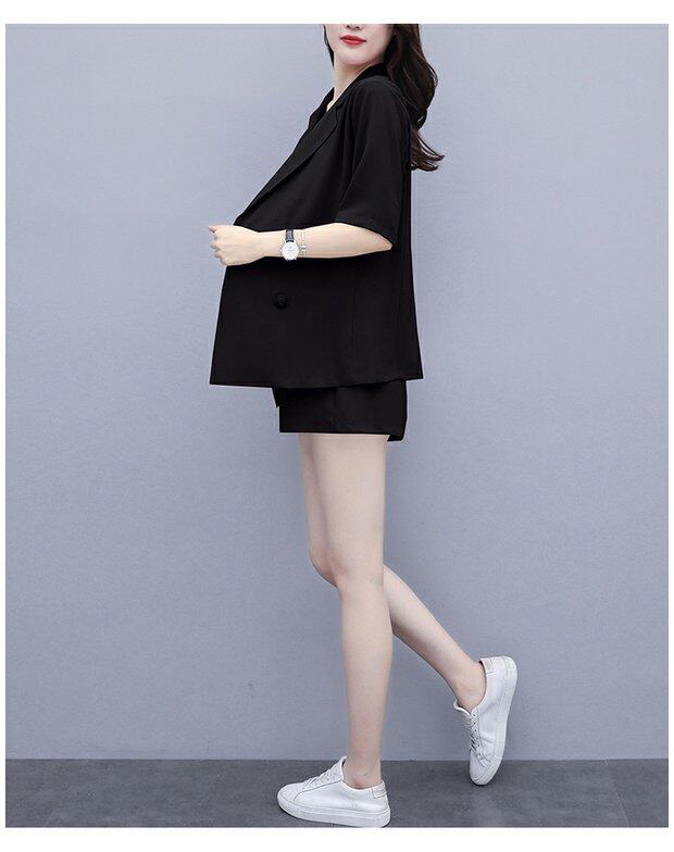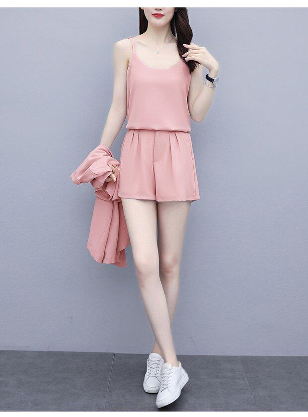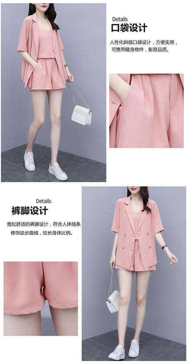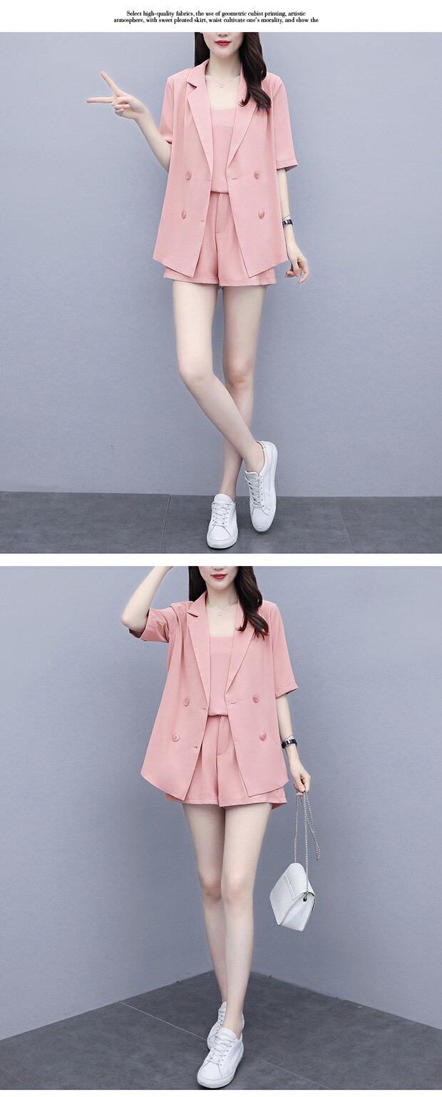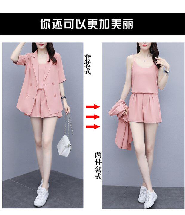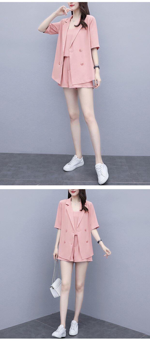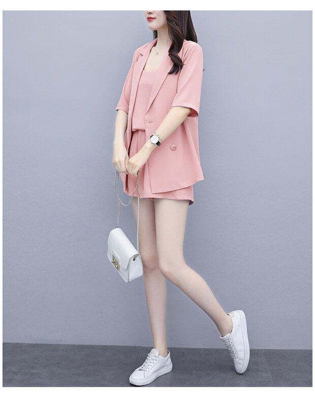 Шорты, комплект, летняя одежда, в корейском стиле, большой размер, в западном стиле, популярно в интернете, подходит для полных девушек, 3 предмета