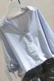 Летняя футболка для отдыха, рубашка, в корейском стиле, в западном стиле, V-образный вырез, большой размер, короткий рукав