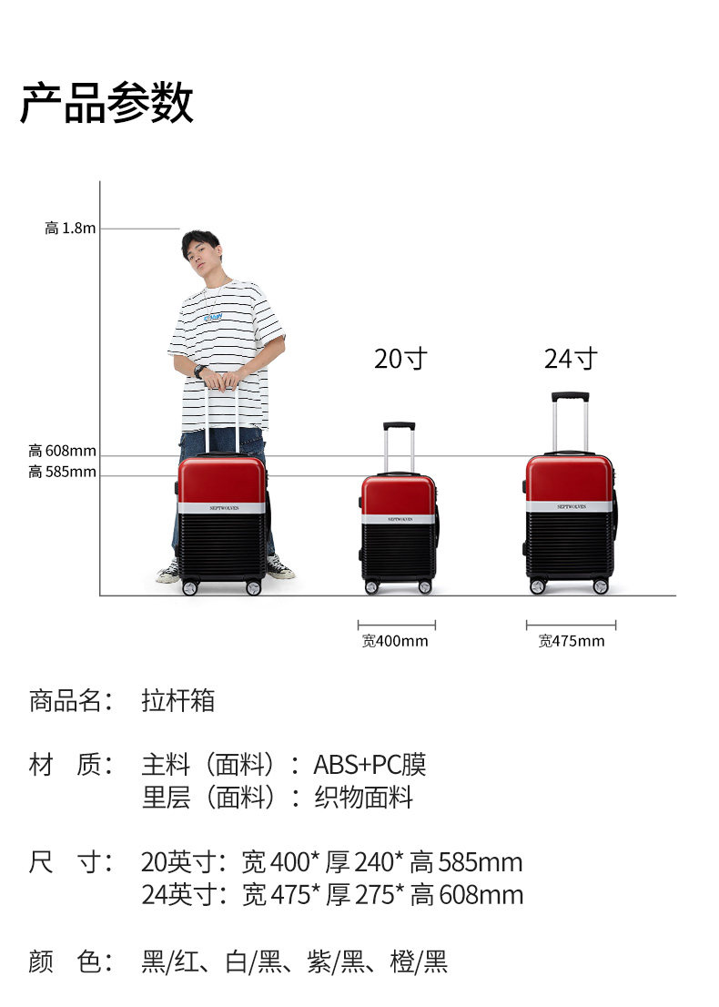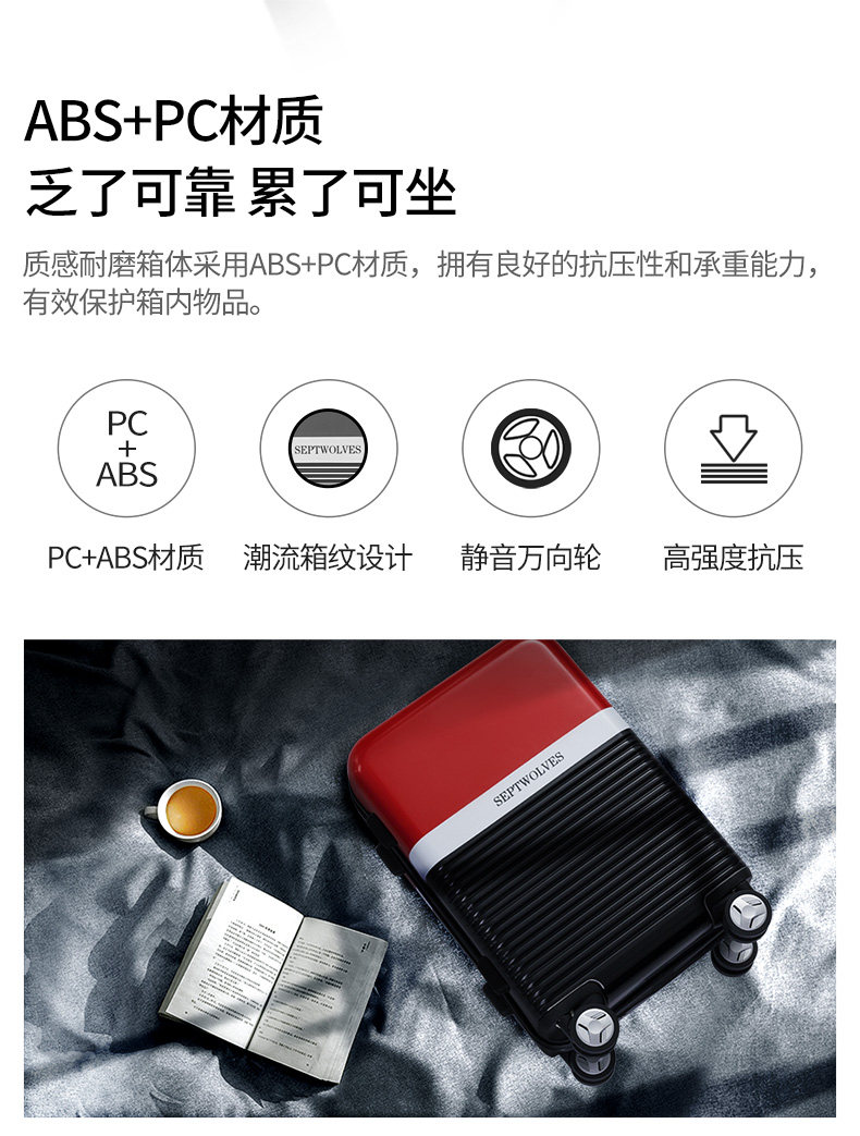 Septwolves, универсальный чемодан подходит для мужчин и женщин для путешествий, 20 дюймов, 24 дюймов