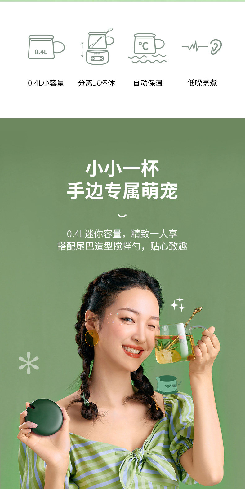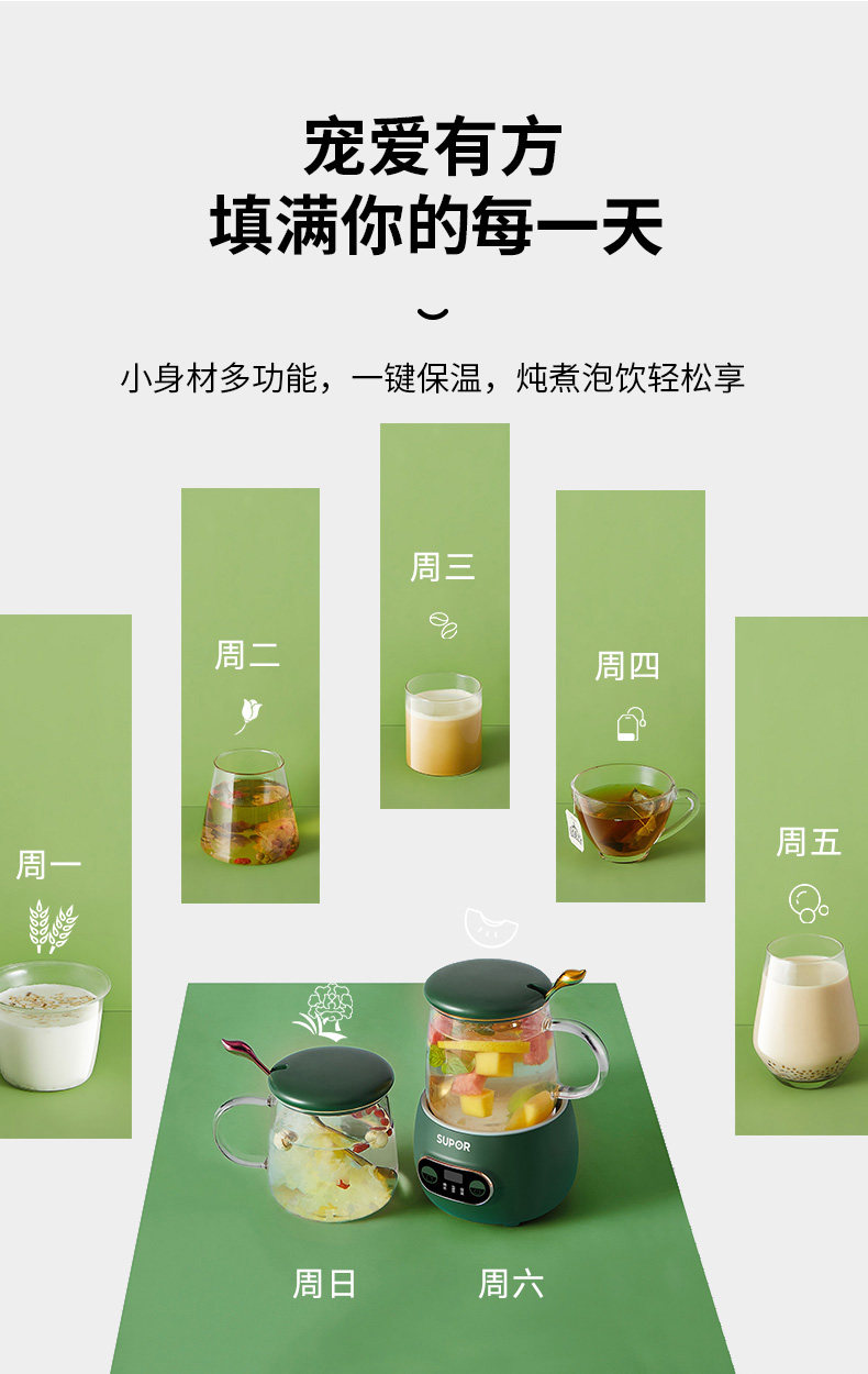 Supor Meng Chao Health Cup Office Маленький чайный кулинарный клуб мебель Многофункциональный изоляционный стекло вареный цветочный чайник