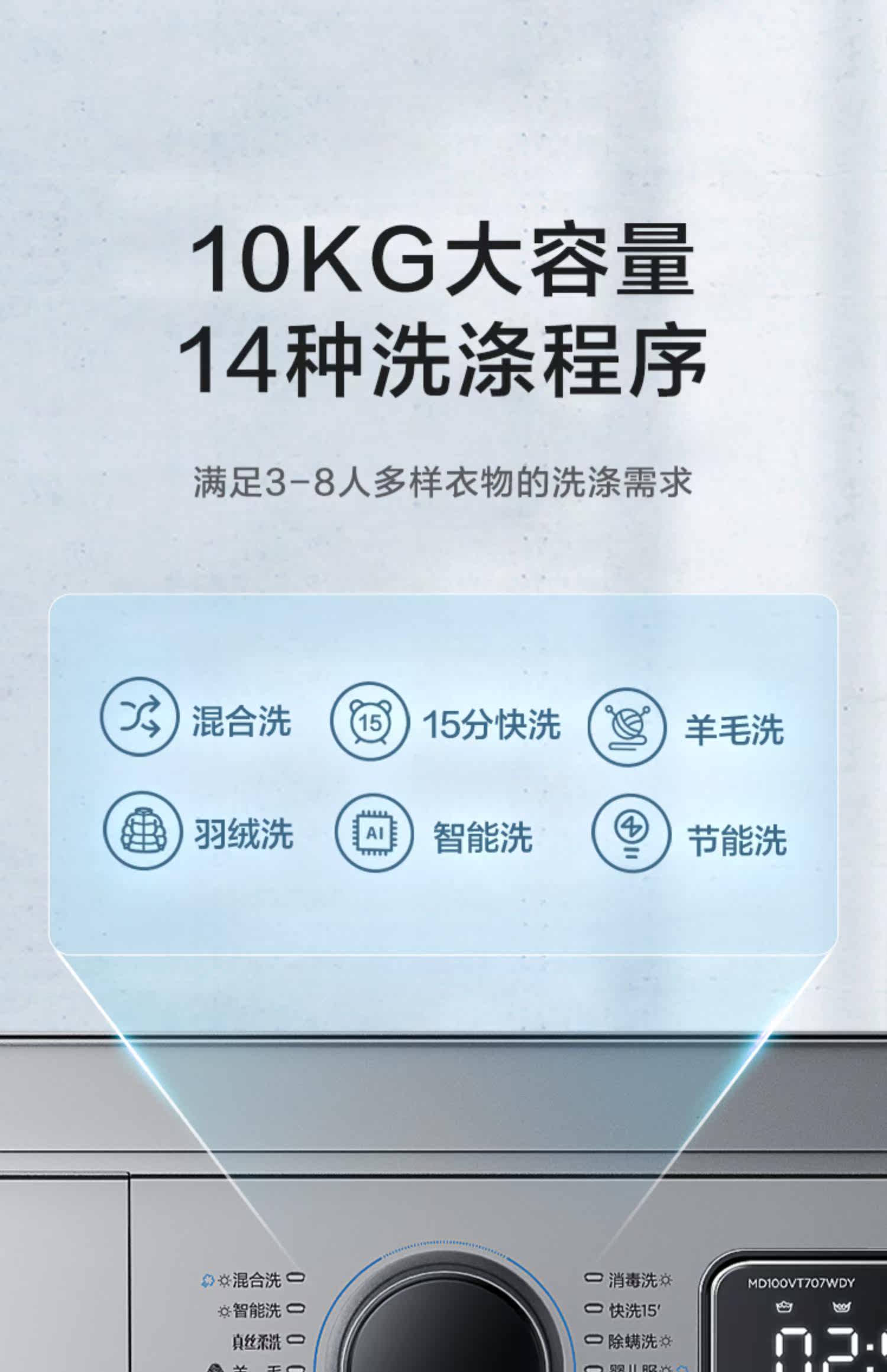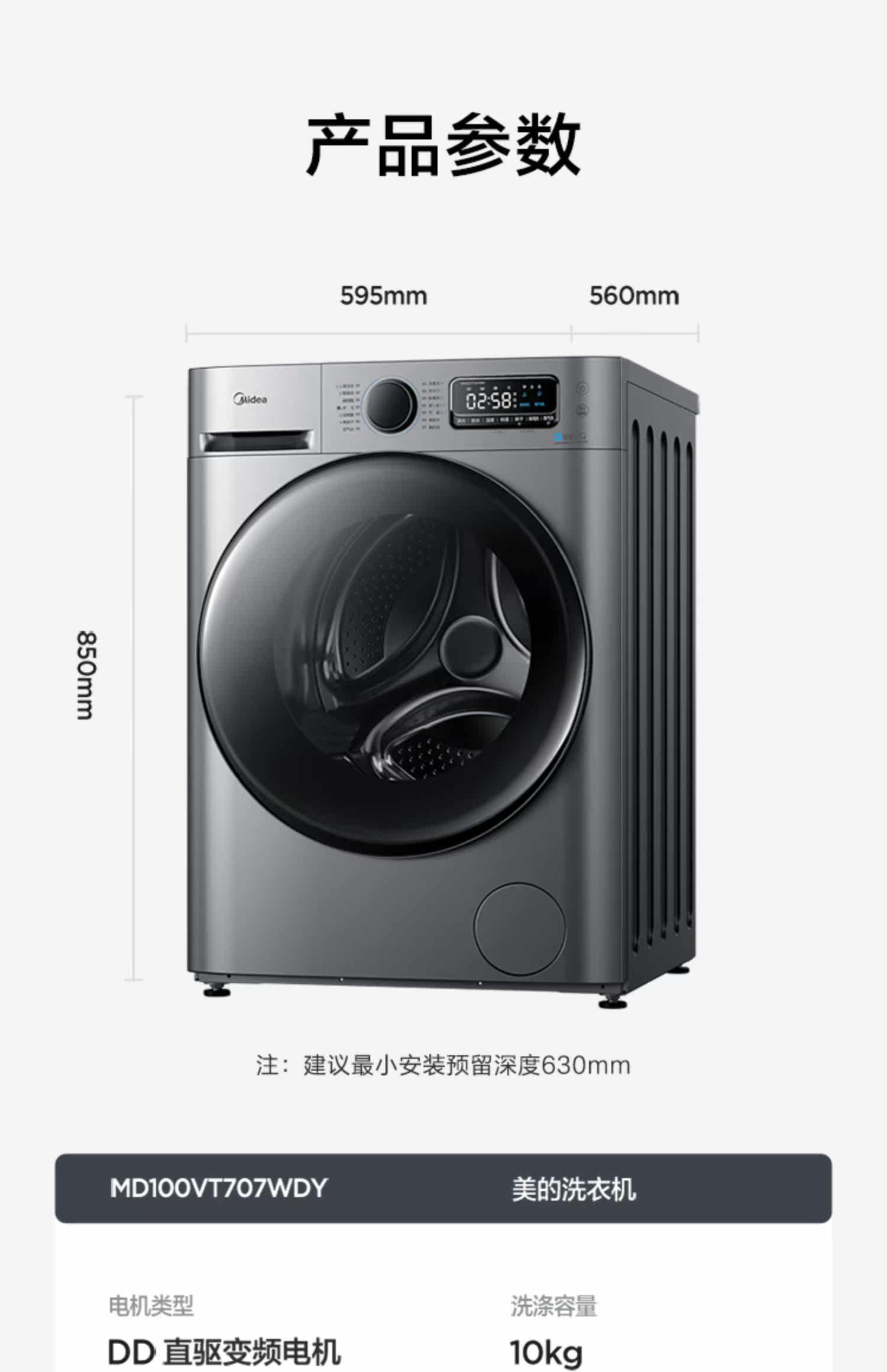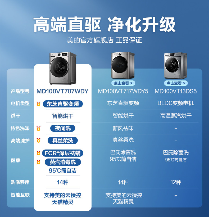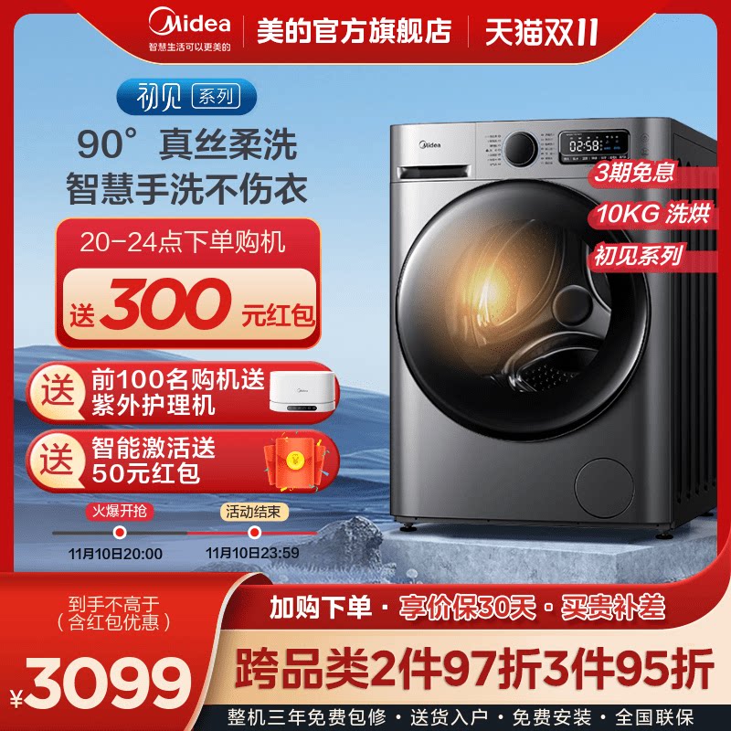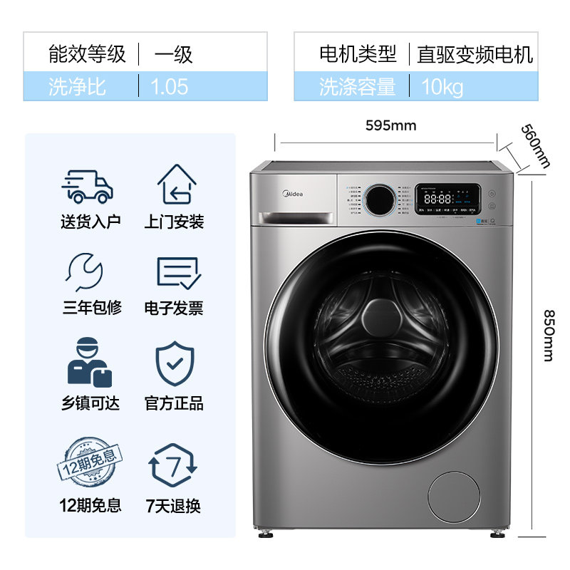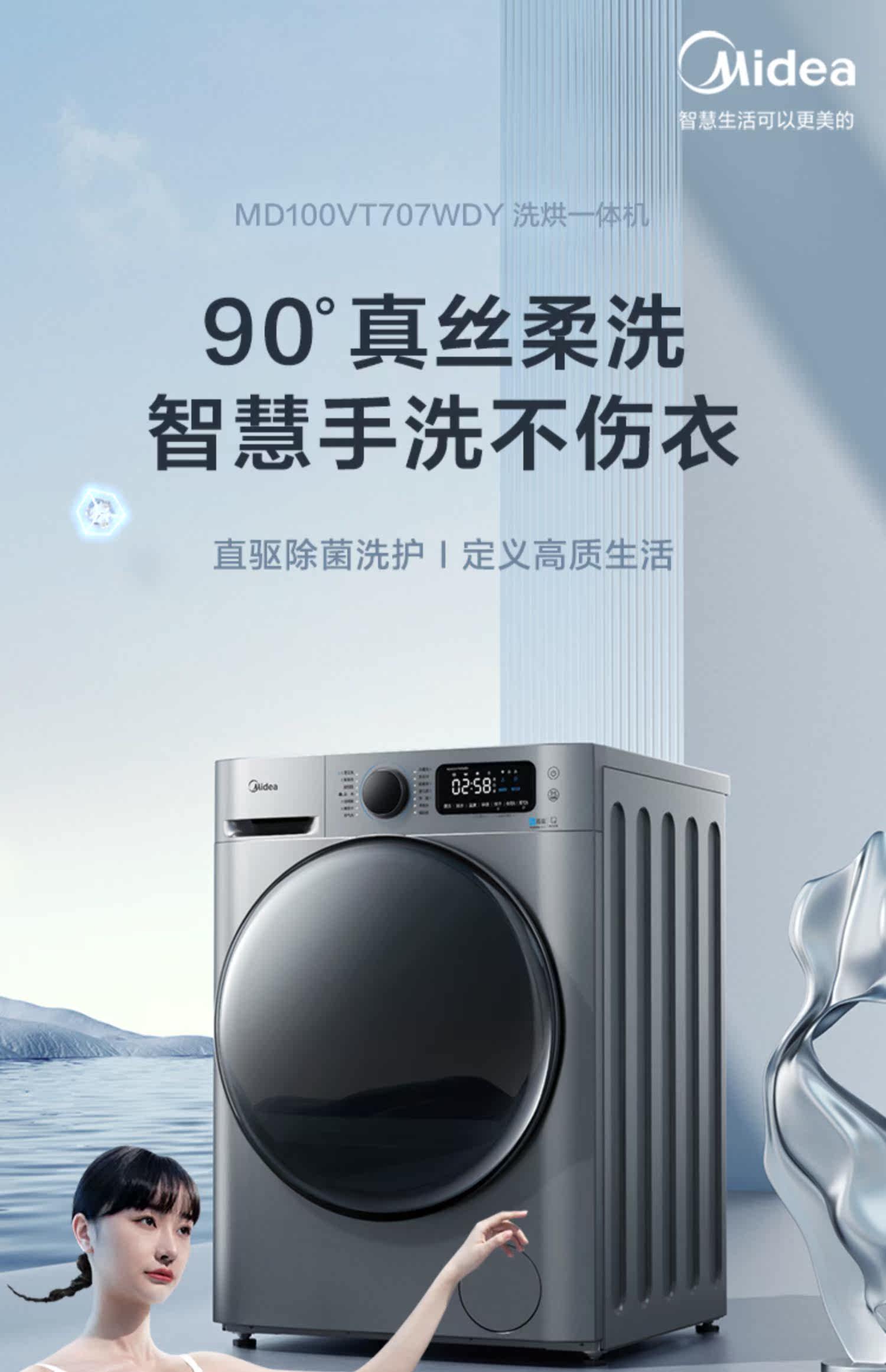 [Сначала см.] Стиральная машина Midea 10 кг Полностью автоматический домашний ролик с прямым приводом с переменной частотой промывка и сушка интегрированная MD707