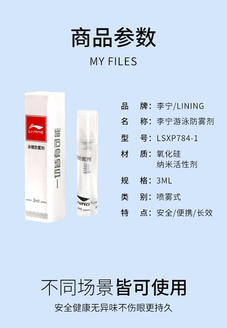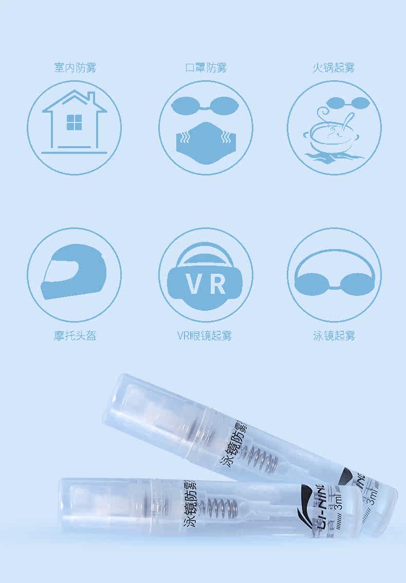 Li Ning, аэрозоль без запотевания стекол, очки для плавания, спрей, объектив, дайвинг