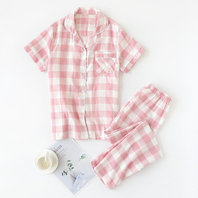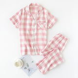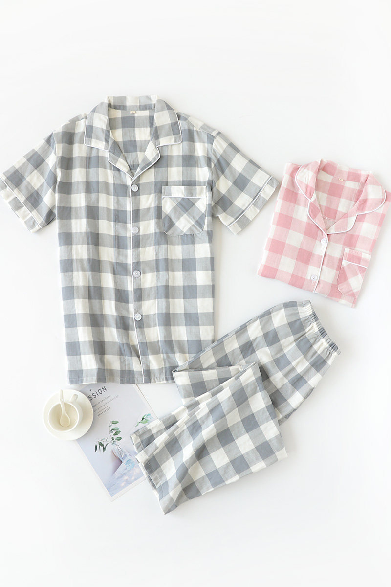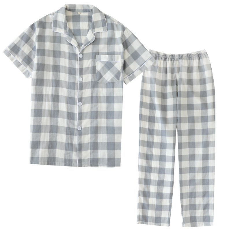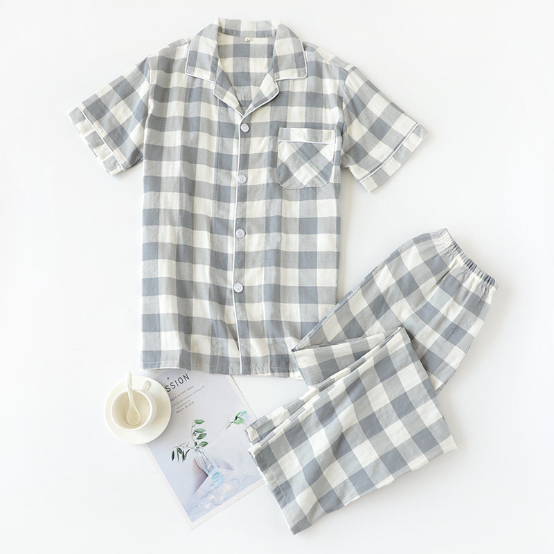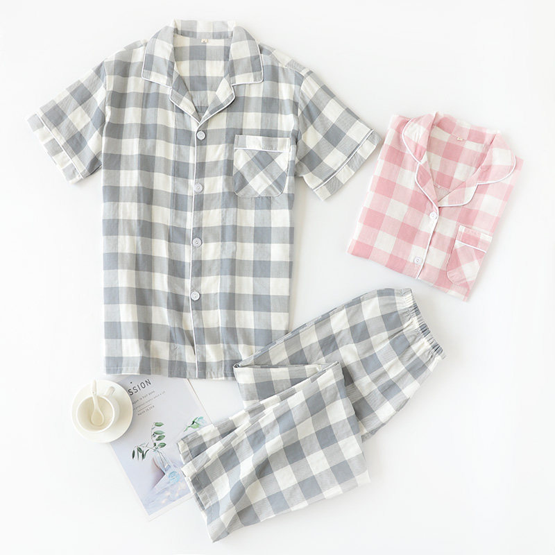 Мужская пижама, хлопковые марлевые штаны, летний тонкий комплект, для влюбленных, короткий рукав, оверсайз