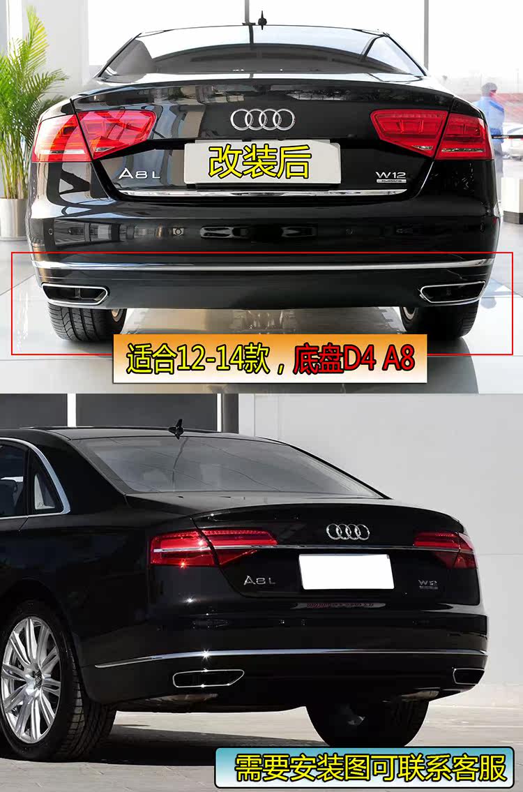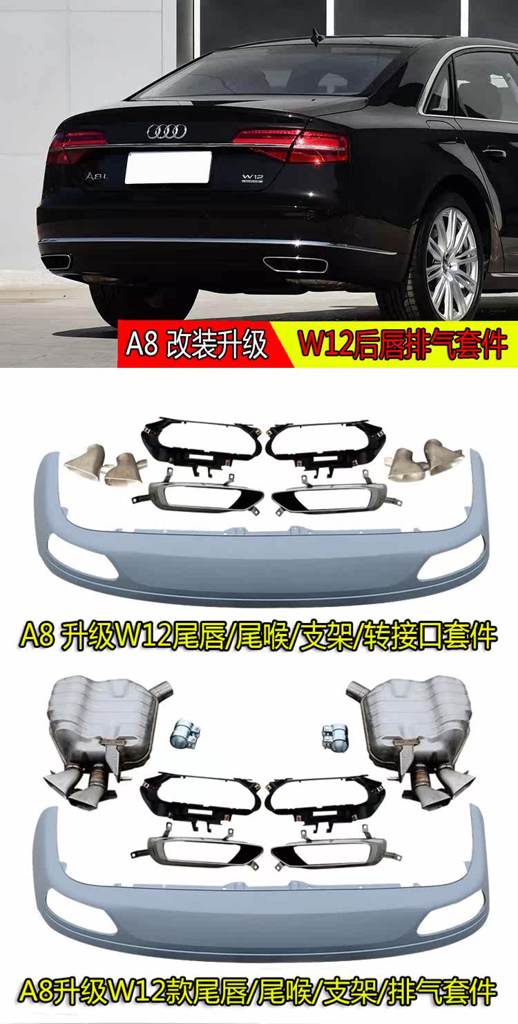 Audi A8 A8L модифицированная задняя губа W12, квадратная выхлопная труба, новый задний спойлер задней двери A812-14