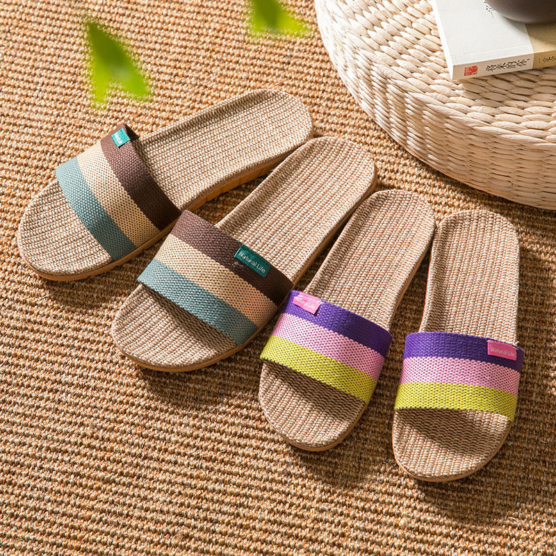 Льняные тапочки женские, летние домашние, нескользящие, бесшумные, впитывающие пот, не вонючие ноги, домашние интернет-тапочки на плоской подошве знаменитостей на все времена года.