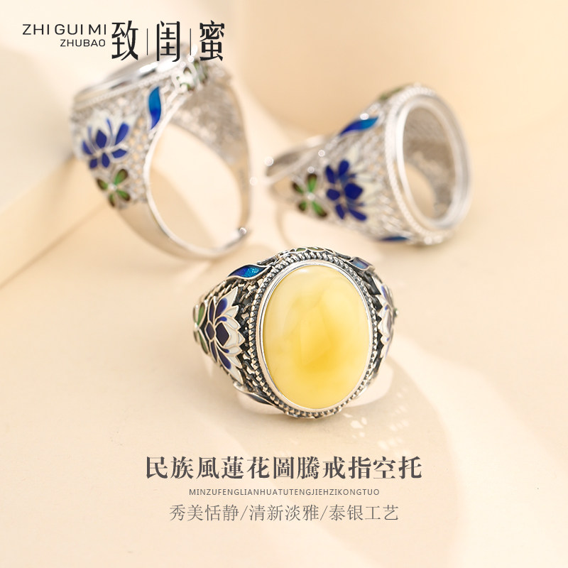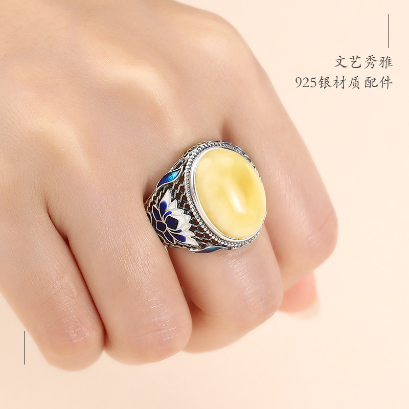 Обручальное кольцо подходит для мужчин и женщин, янтарная инкрустация камня из воскового агата, драгоценный камень для кольца