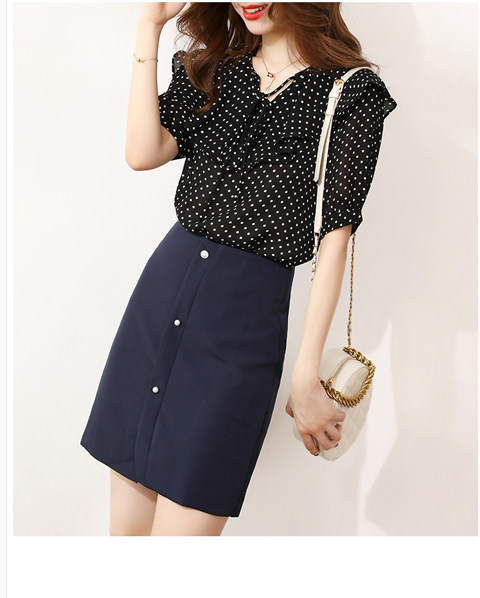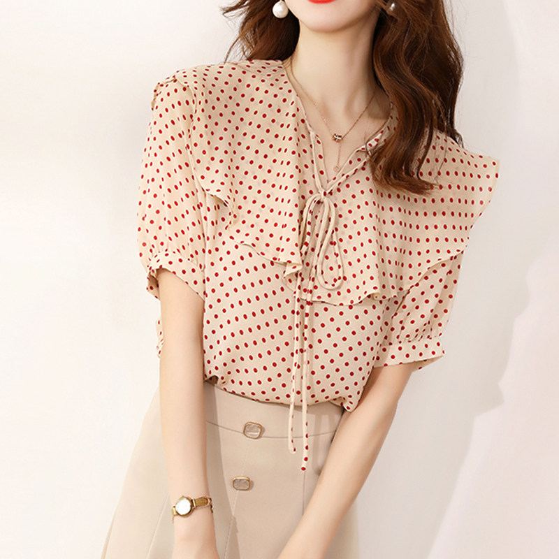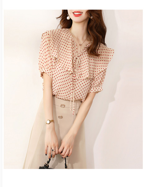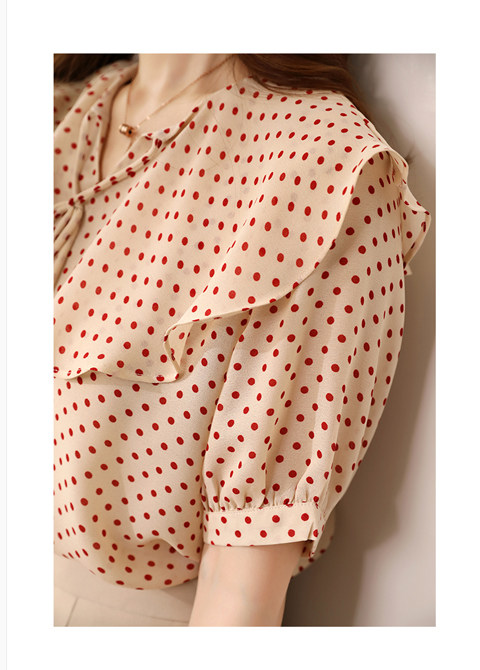 Японская классическая ретро дизайнерская рубашка, V-образный вырез, короткий рукав, тренд сезона