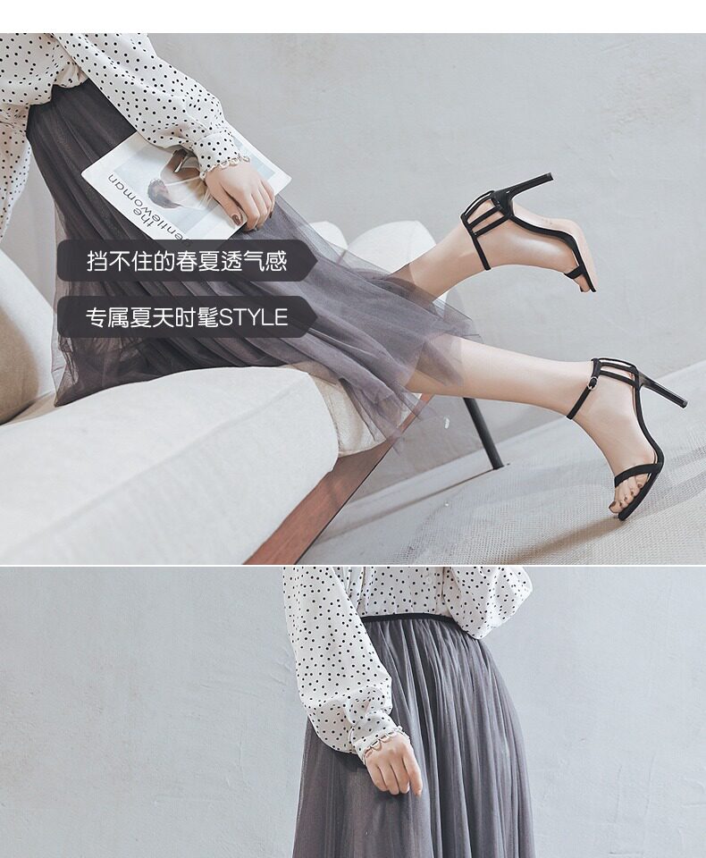 一代佳人 Сексуальные черные летние туфли на высоком каблуке, универсальные босоножки с ремешком, коллекция 2023