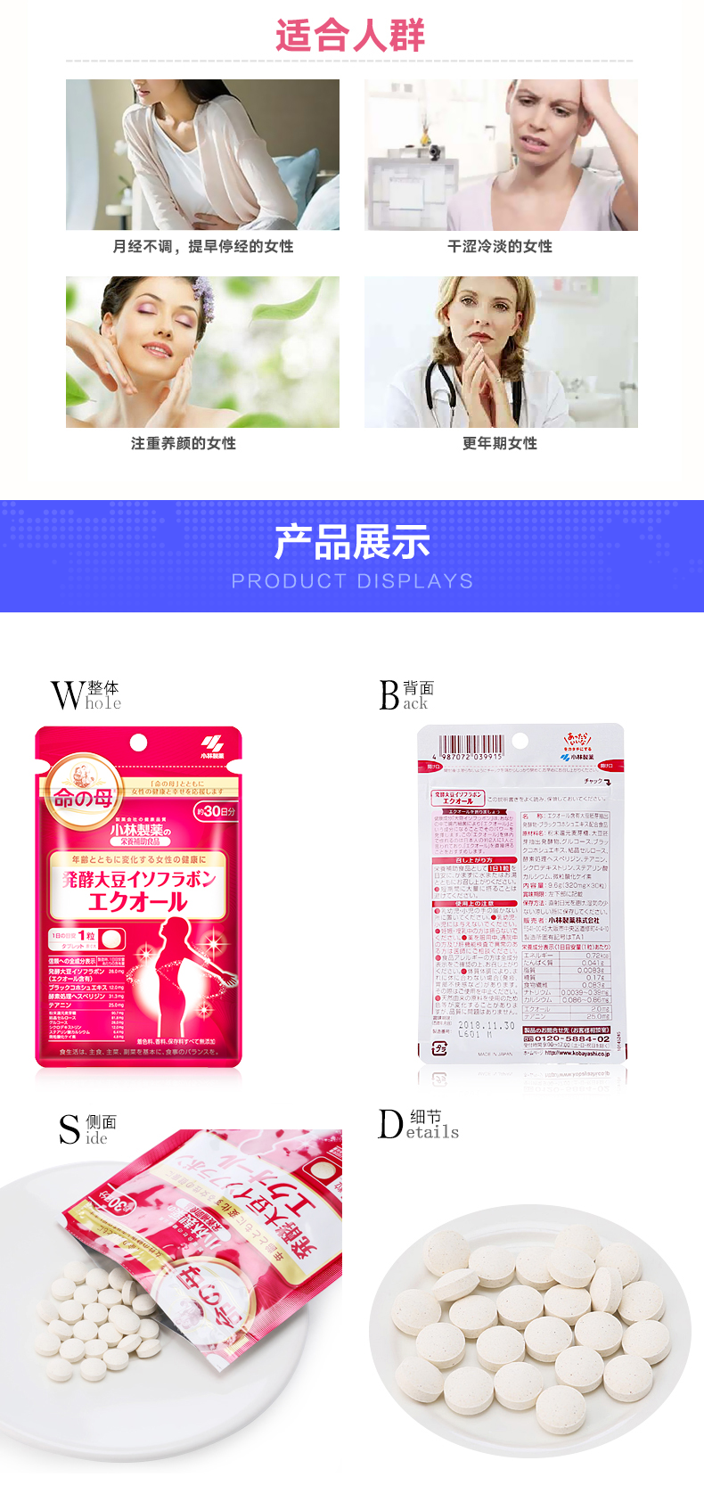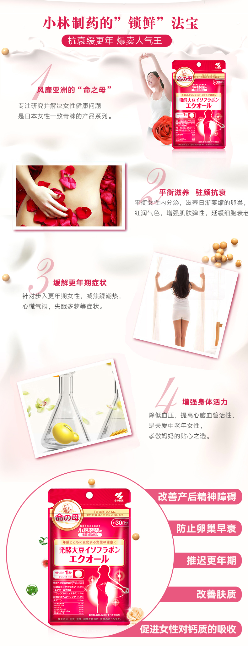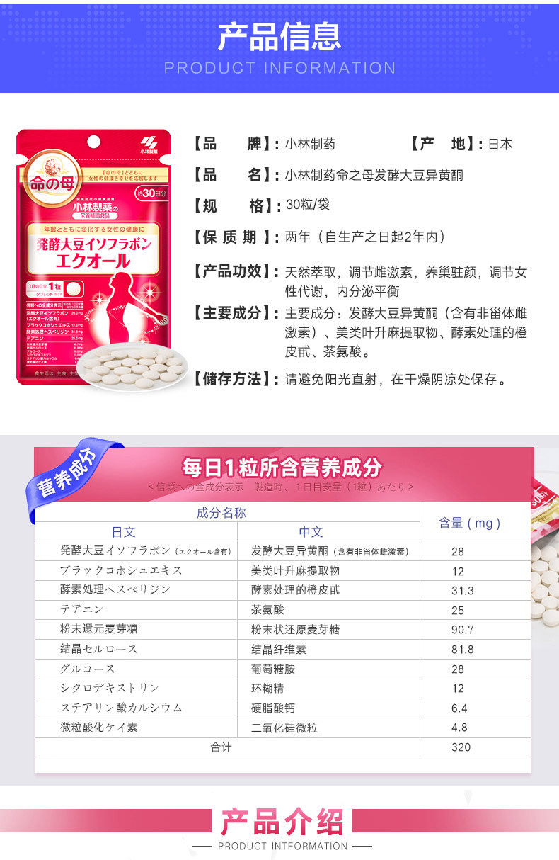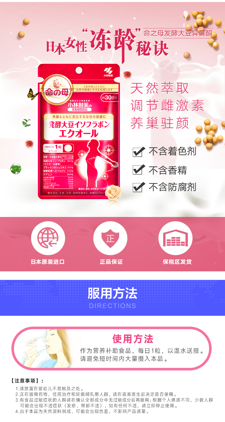 小林制药 Мать судьбы - ферментированная капсулы сои изофлавона 30 для улучшения проституции яичников в физиологический период менопаузала
