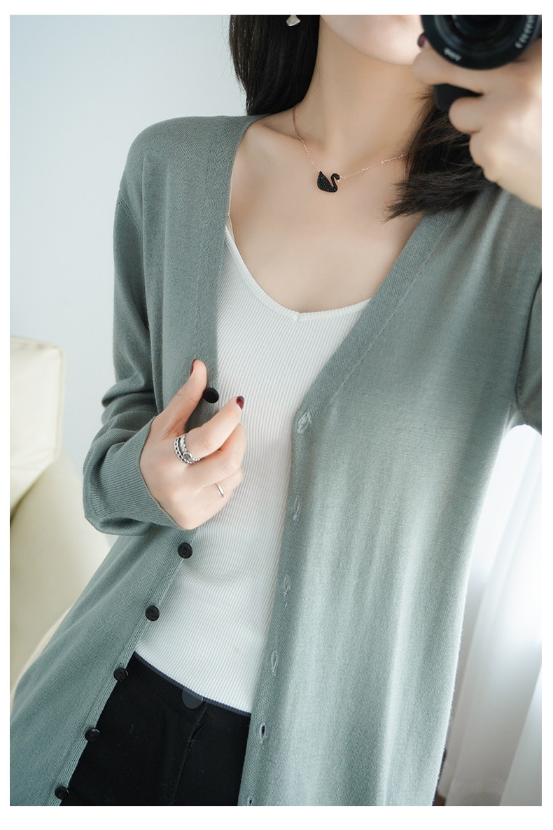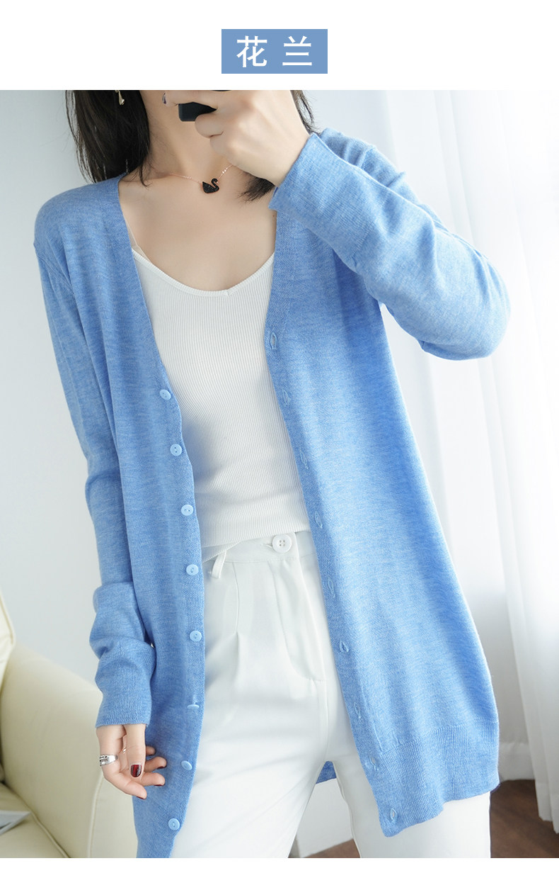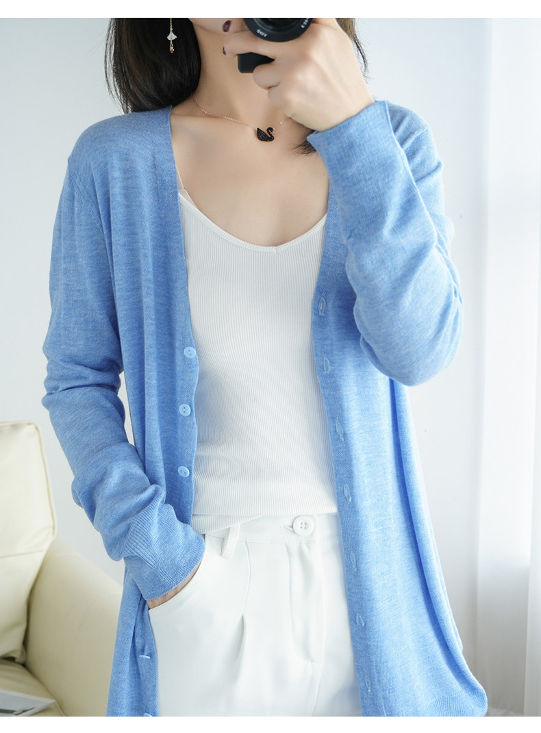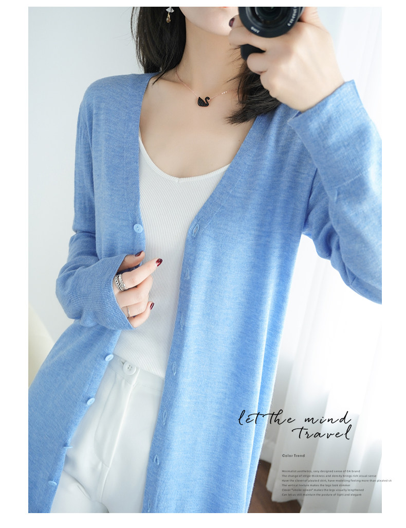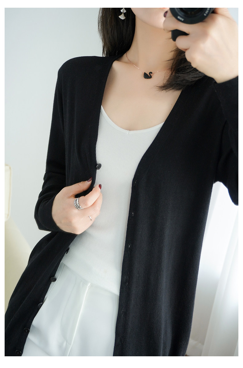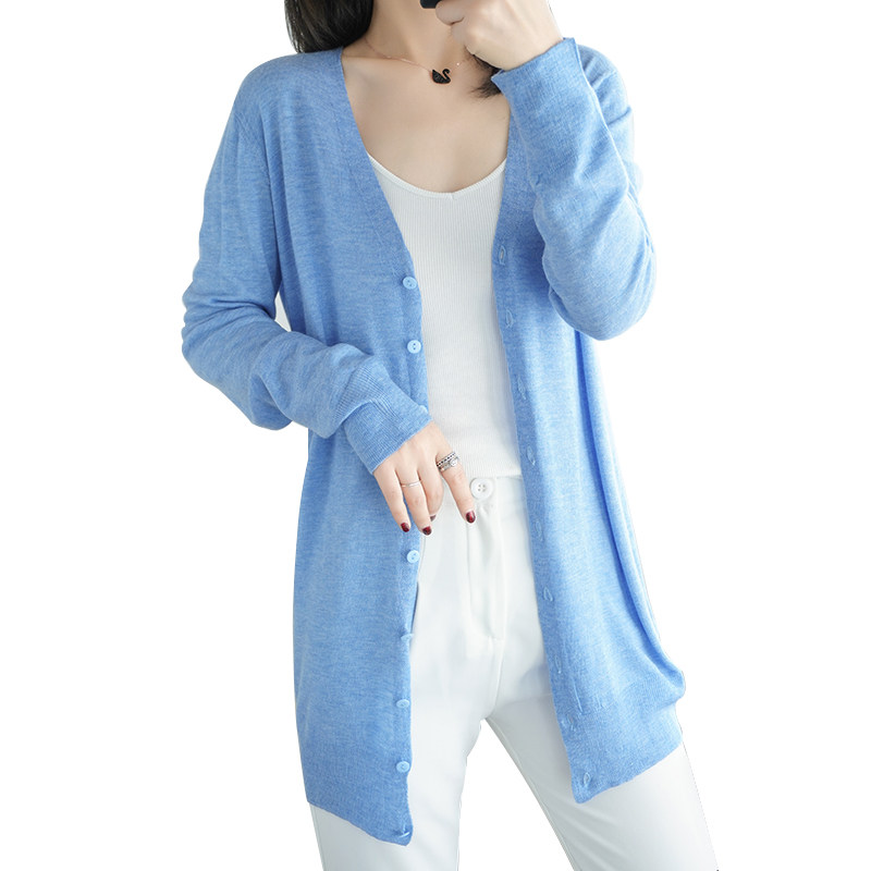 Тонкий длинный шерстяной кардиган, трикотажная куртка, одежда для защиты от солнца, свитер, свободный крой, средней длины