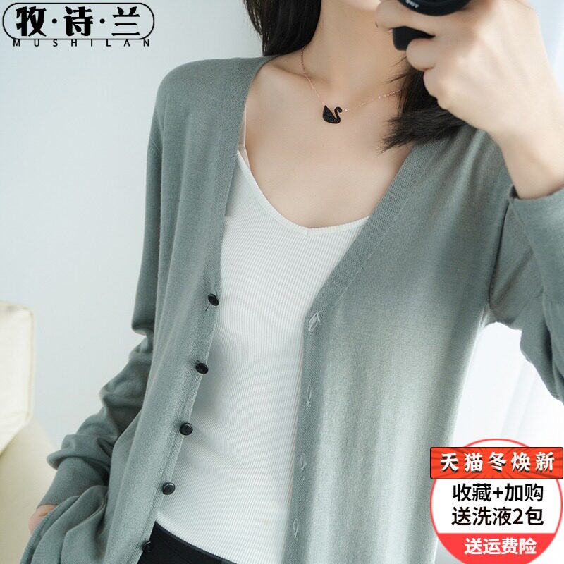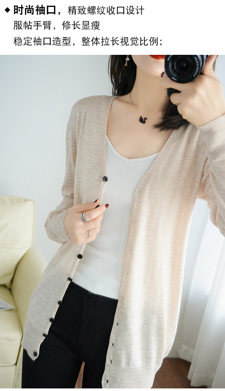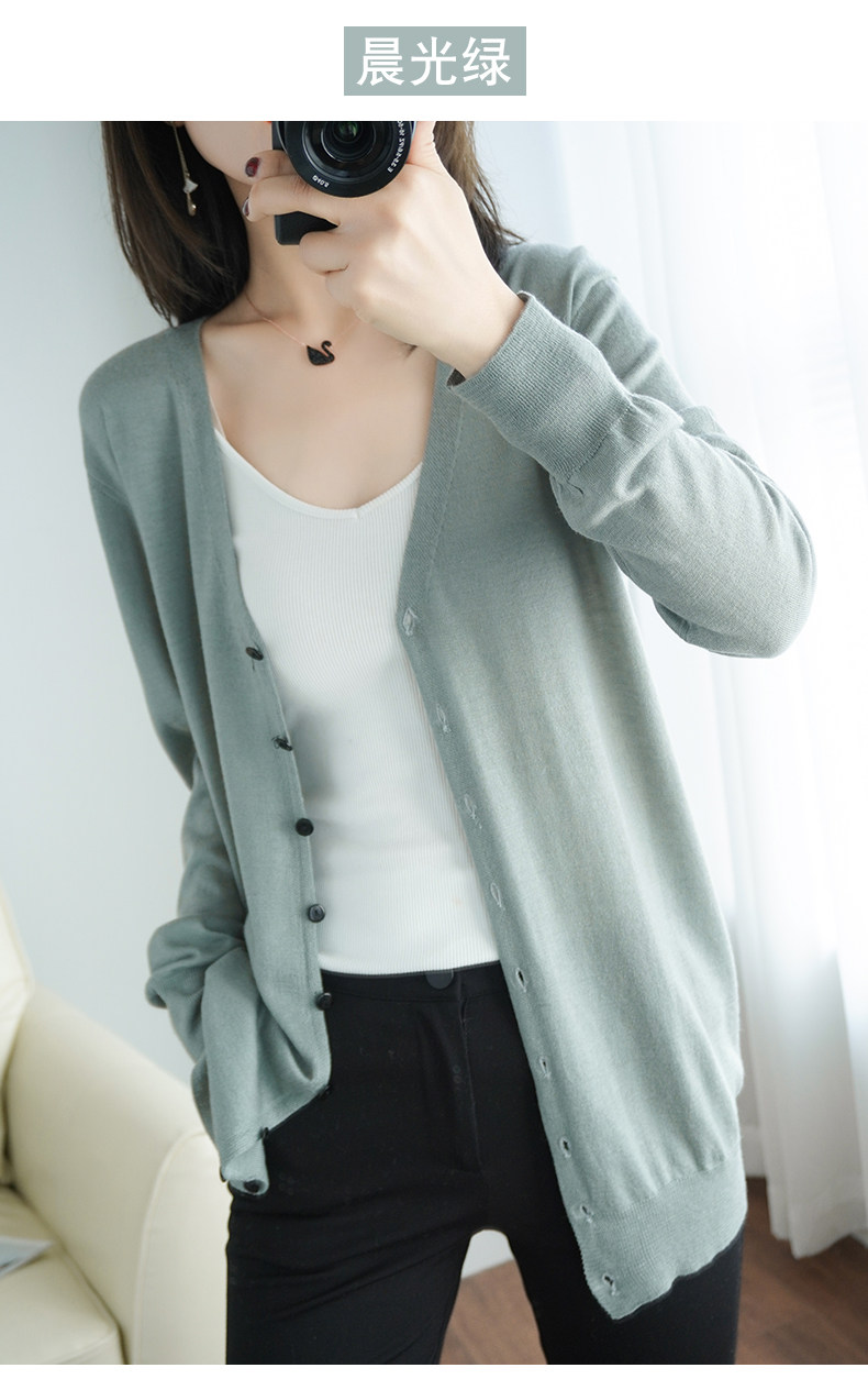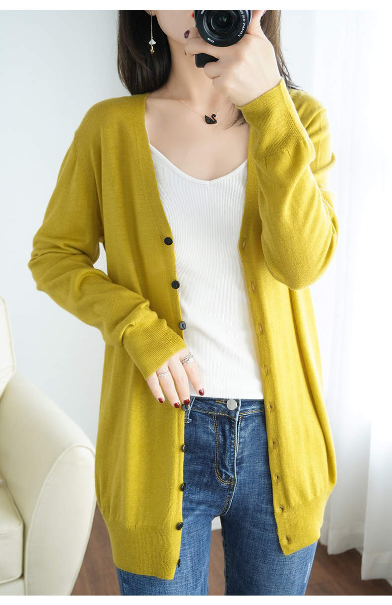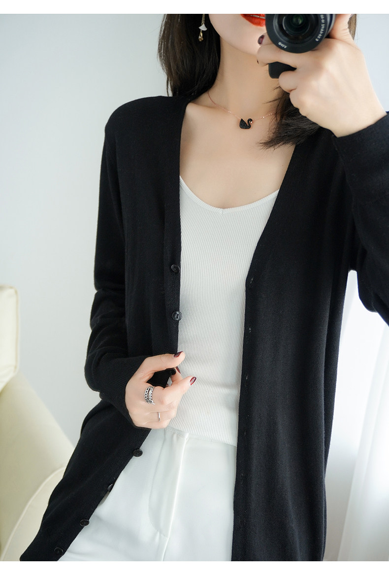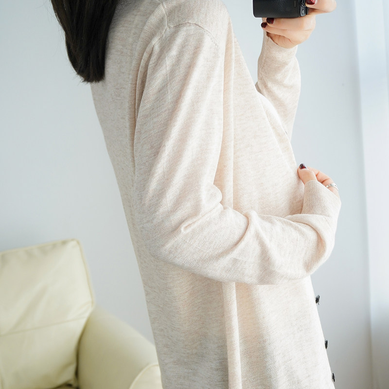 Тонкий длинный шерстяной кардиган, трикотажная куртка, одежда для защиты от солнца, свитер, свободный крой, средней длины