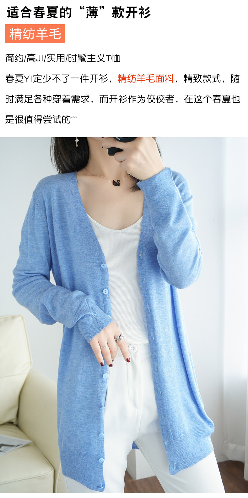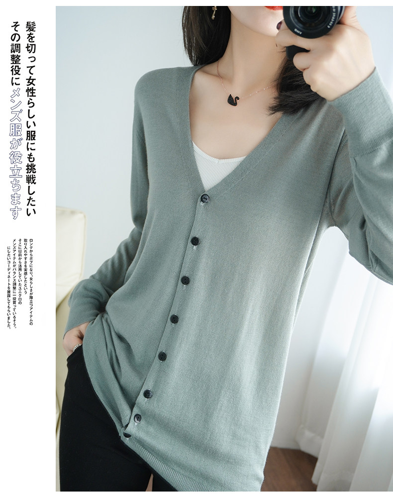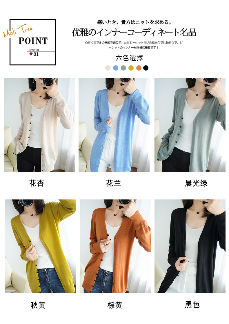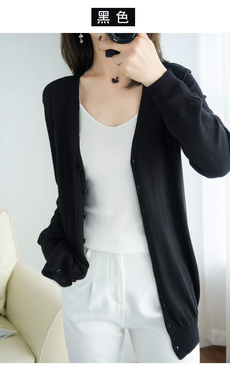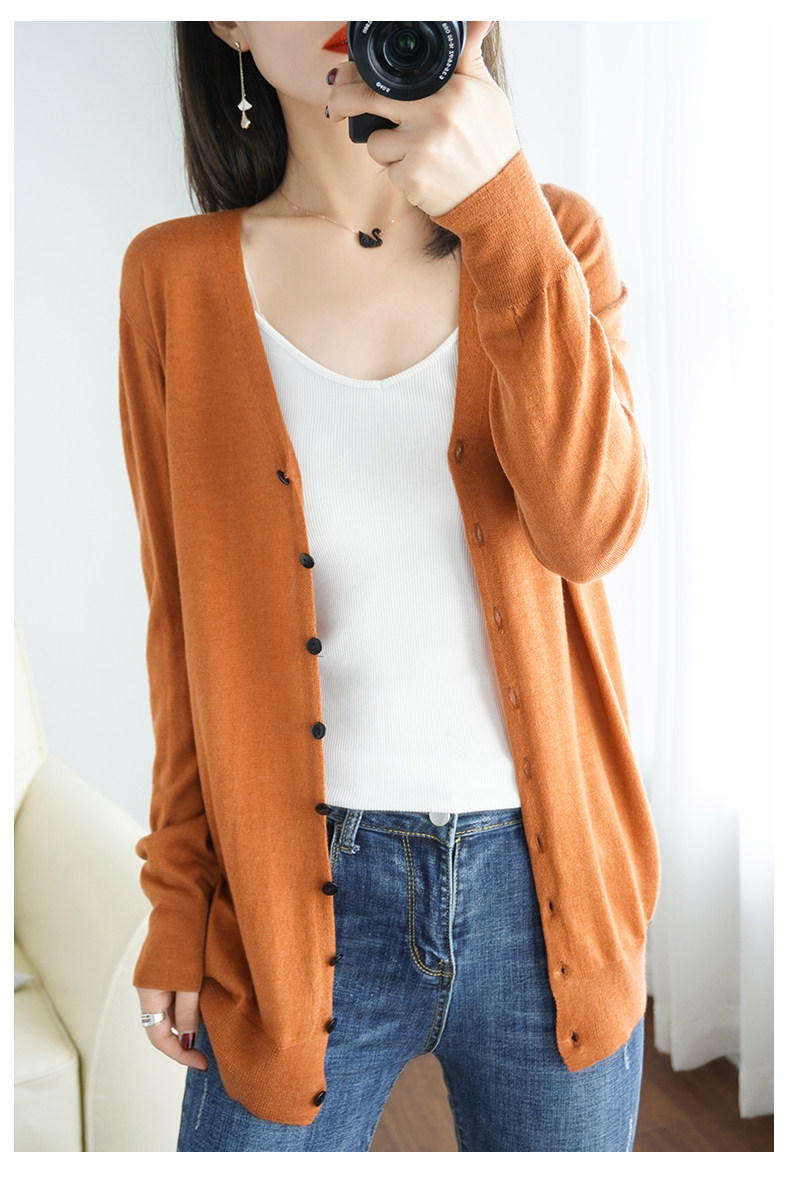 Тонкий длинный шерстяной кардиган, трикотажная куртка, одежда для защиты от солнца, свитер, свободный крой, средней длины