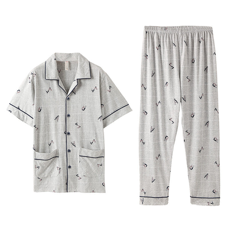 芬腾 Пижама, хлопковый тонкий кардиган, комплект для отдыха, короткий рукав, в корейском стиле, оверсайз