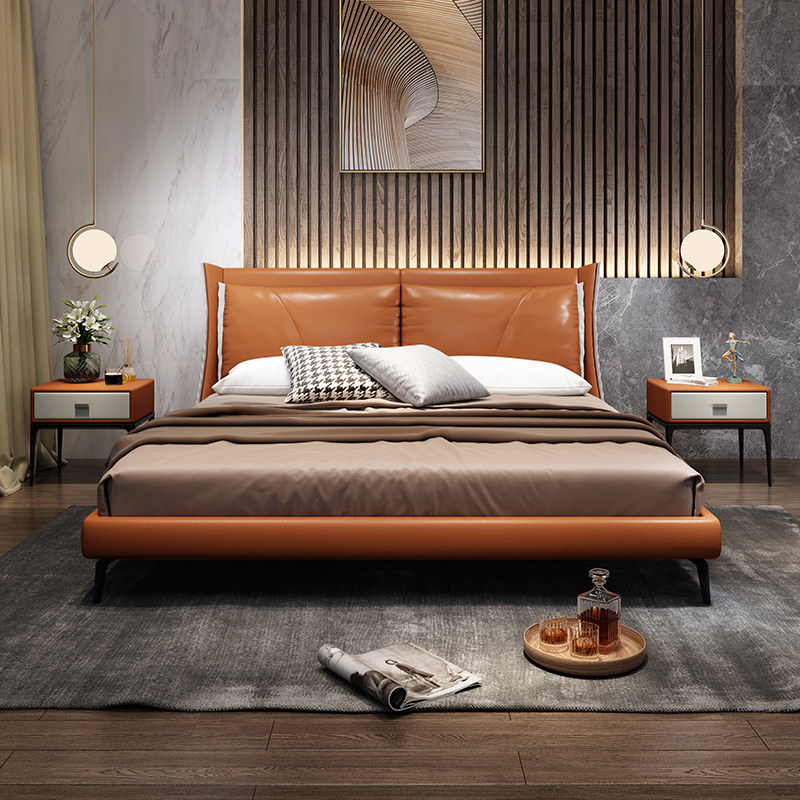 Итальянская минималистская легкая роскошная кожаная кровать 1,8 метра кожа