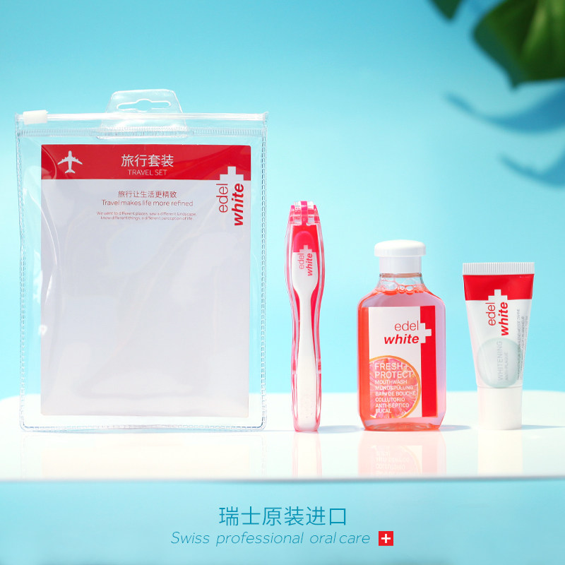 Импортный портативный комплект для путешествий, зубная щетка, ополаскиватель для рта, осветляющая зубная паста, Швейцария, защита от кариеса