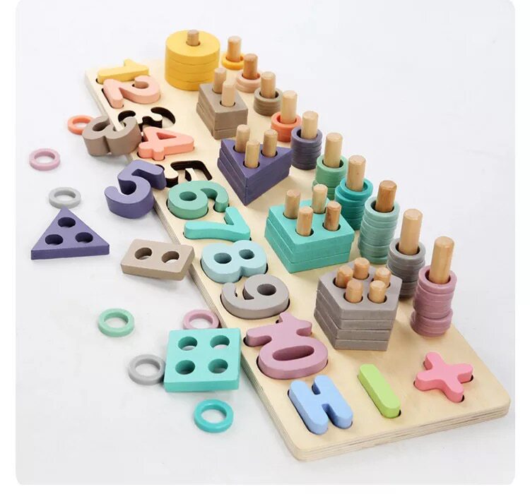 Деревянный цифровой геометрический познавательный конструктор, головоломка, игрушка, раннее развитие, «три в одном»