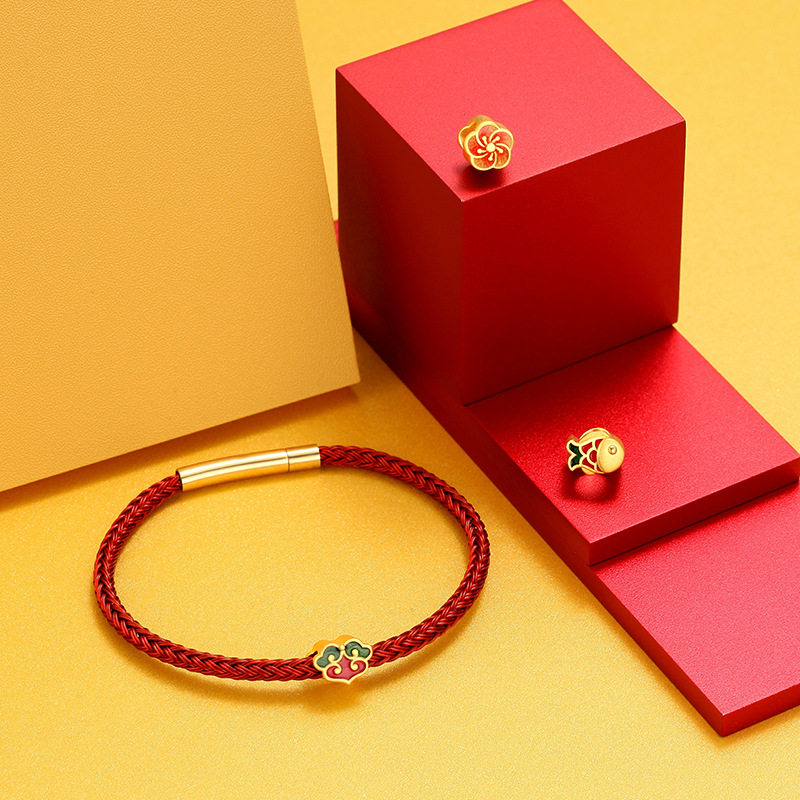 Acer, золотой браслет с одной бусиной в форме цветка с бусинами, двусторонное ювелирное украшение, эмаль