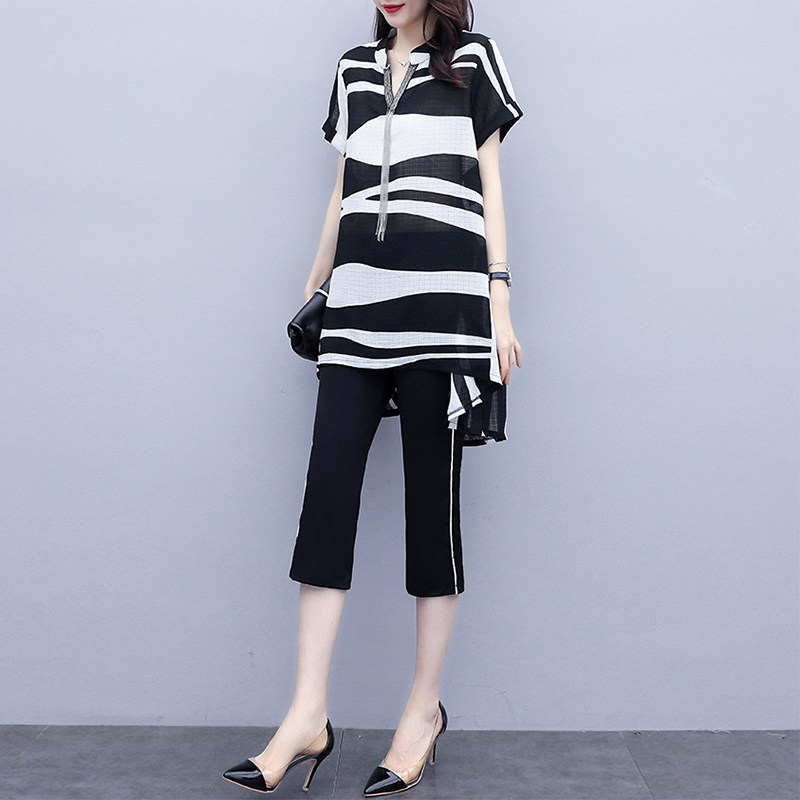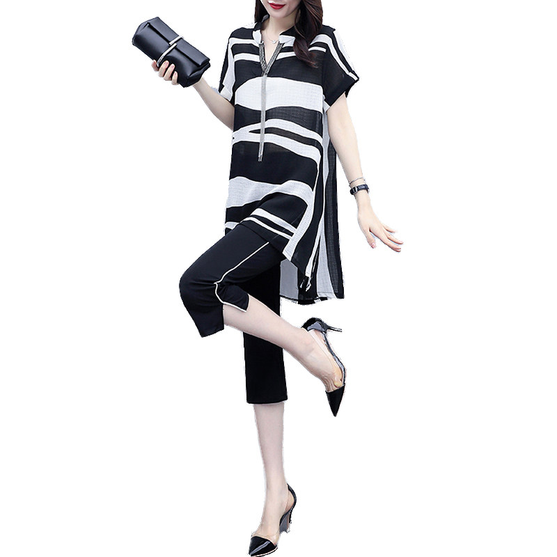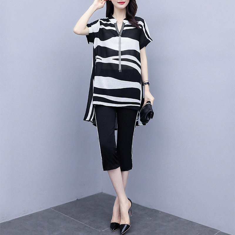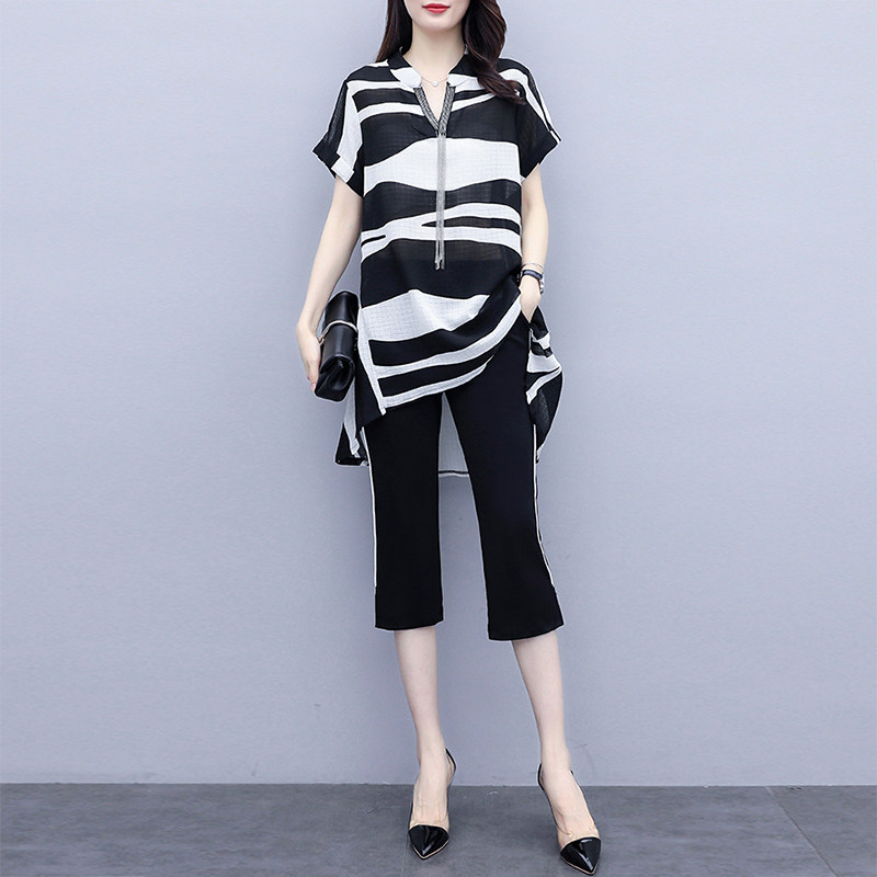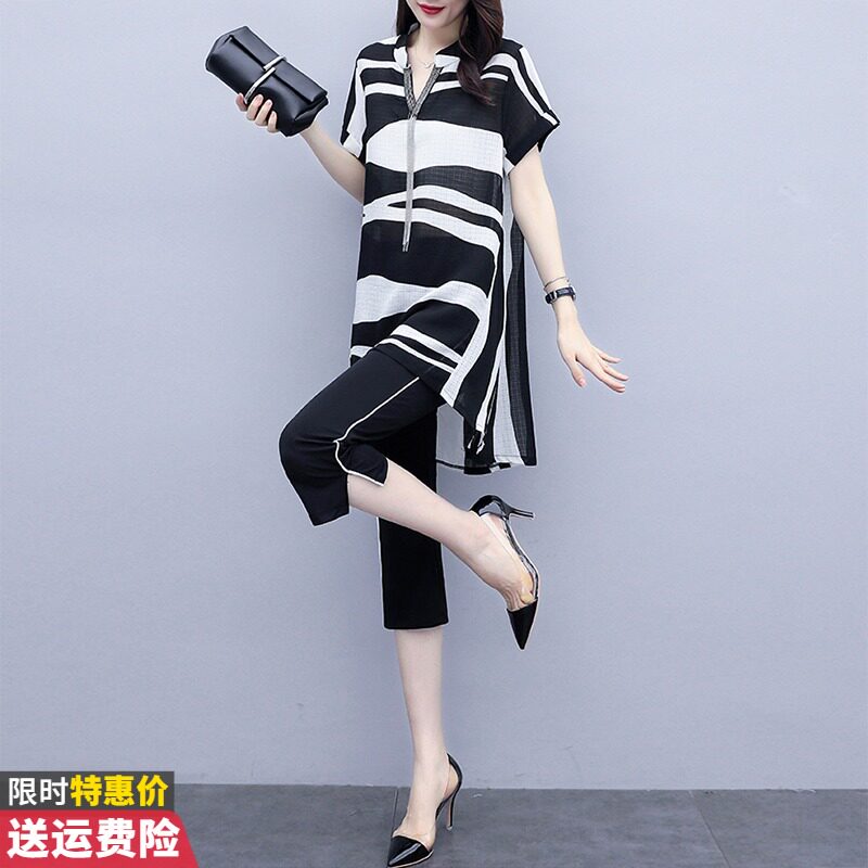 Шифоновый летний модный комплект, 2024 года, городской стиль, большой размер, в западном стиле