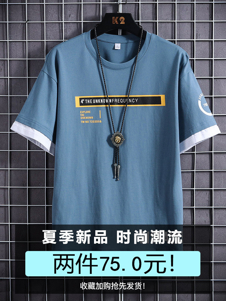Футболка с коротким рукавом, трендовая брендовая мужская хлопковая летняя одежда с круглым воротником, в корейском стиле