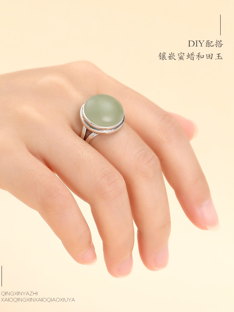 Бирюзовая инкрустация камня, ретро обручальное кольцо из воскового агата, серебро 925 пробы