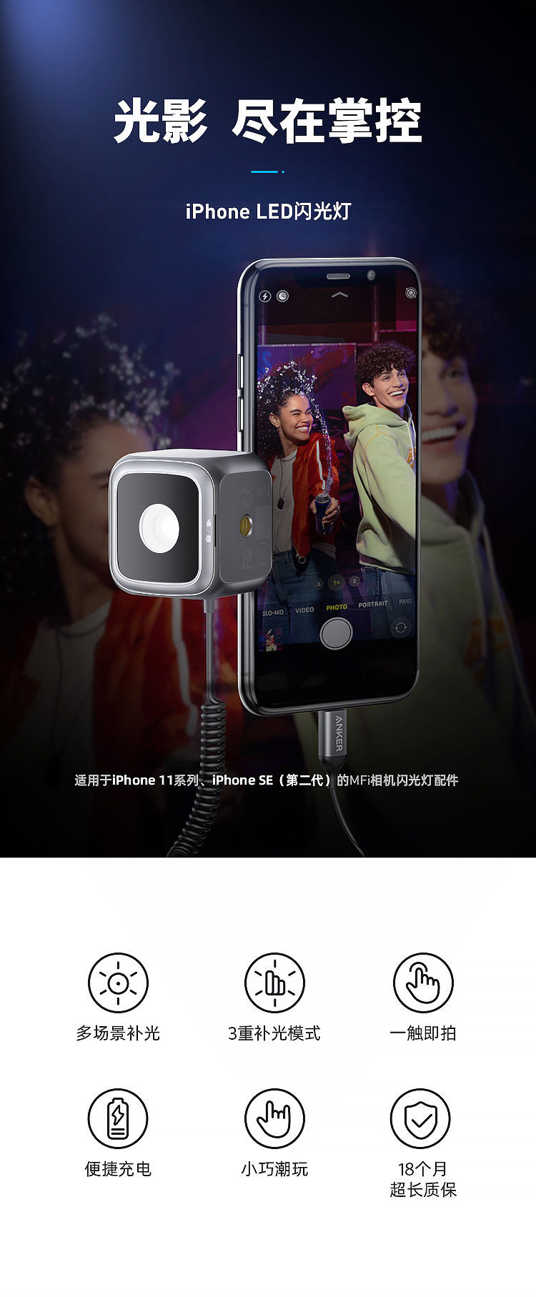 Вспышка камеры мобильного телефона Anker с заполняющей подсветкой MFi подходит для iPhone11/se2