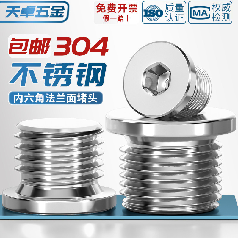 304 Броночная граница с нержавеющей стали, блокирующая трубопровод, шестиугольные обстановки плоских плоских заглушек G1 Точки 2: 4: 4 минуты, 1 -дюймовый 2 дюйма