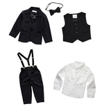 - Белый жилет, рубашка, черные штаны, галстук-бабочка, подтяжки